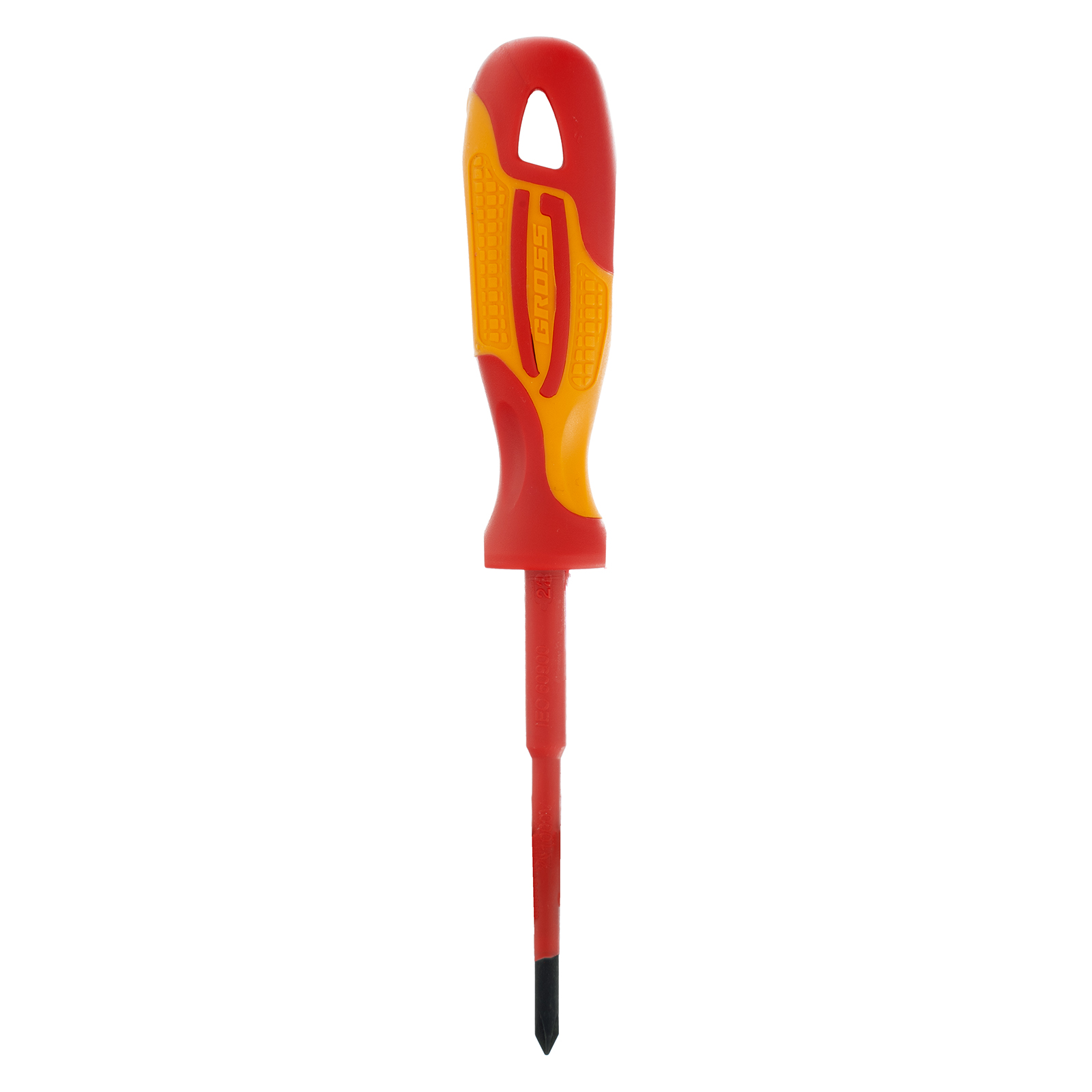Диэлектрическая отвертка Gross 12946 до 1000 В, PH0 х 75 мм, из стали CrMo, с двухкомпонентной рукояткой, применяется при проведении работ с крепежом типа Phillips. С ее помощью можно установить электросчетчики, клеммники, розетки и т.д. Отвертка со стержнем длиной 75 мм оптимально подходит для работы на поверхностях и в углублениях. Внимание — техника безопасности запрещает выполнять работы под напряжением!