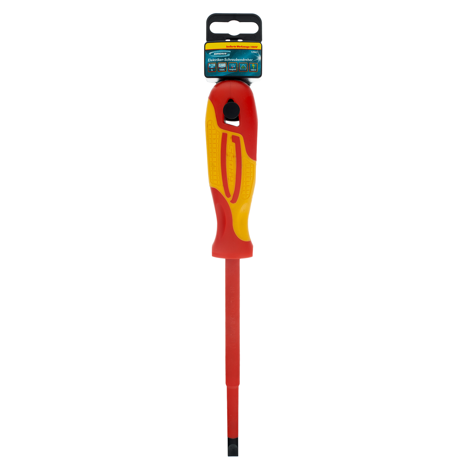Диэлектрическая отвертка Gross 12945, SL8 х 150 мм, из стали CrMo, до 1000 В,с двухкомпонентной рукояткой, позволяет решать профессиональные задачи при работе с электрооборудованием. Отверткой со шлицем «минус» осуществляется монтаж или извлечение крепежа типа Slotted при замене розеток, установке электросчетчиков, клеммников и т.д. За счет стержня длиной 150 мм инструмент подходит для работы в углублениях и с легкодоступным крепежом. Внимание — техника безопасности запрещает выполнять работы под напряжением!