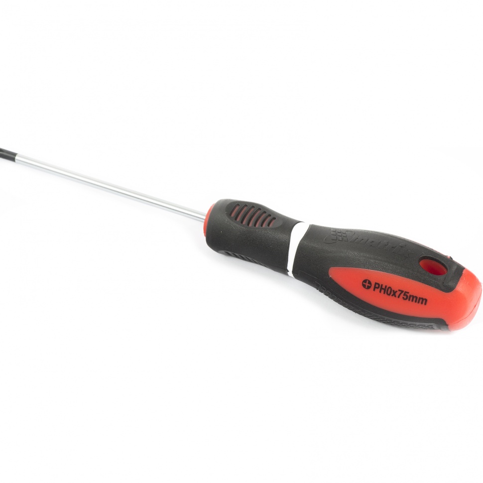 Отвертка Matrix «Era» 12050, PH0 х 75 мм, CrV, 3-х компонентная рукоятка, подходит для профессионального использования при осуществлении монтажных, ремонтных и строительных работ. С ее помощью можно выполнить монтаж/демонтаж крепежа Phillips «крест». Стержня длиной 75 мм достаточно для работ на поверхностях и в углублениях.