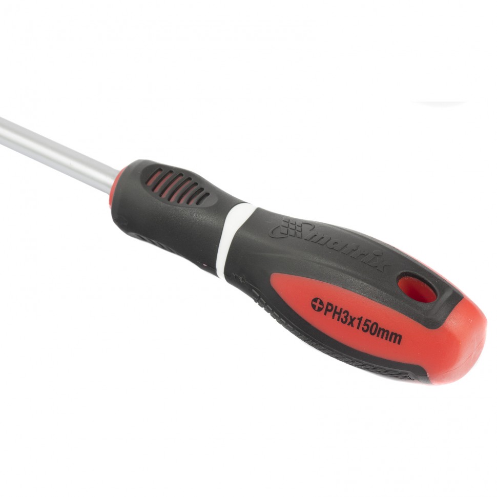 Отвертка Matrix «Era» 12066, PH3 х 150 мм, из стали CrV, с 3-х компонентной рукояткой, подходит для профессионального использования при осуществлении монтажных, ремонтных и строительных работ. С ее помощью можно выполнить монтаж/демонтаж крепежа Phillips «крест». Стержня длиной 150 мм достаточно для работ на поверхностях и в углублениях.