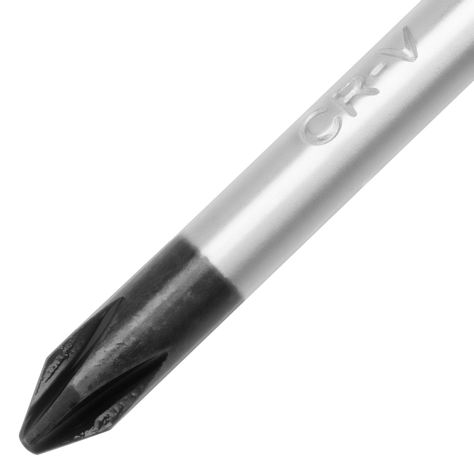 Стержень и жало выполнены из износостойкой легированной стали CrV твердостью 50-52 HRC, что обеспечивает долгий срок службы отвертки.