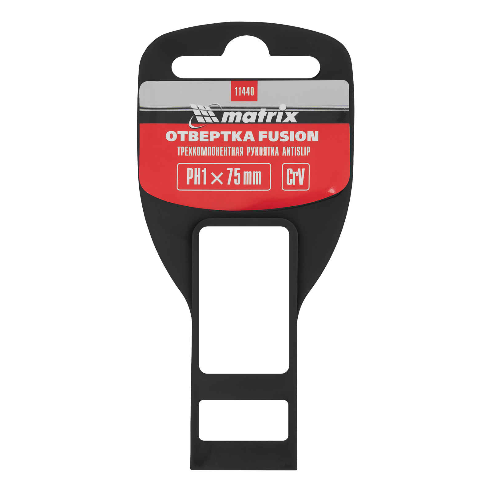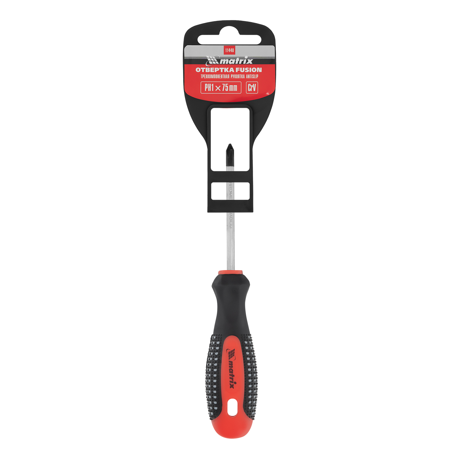 Отвертка Matrix Fusion 11440, PH1 х 75 мм, из стали CrV, с 3-х компонентной рукояткой «anti slip», предназначена для работ с резьбовым крепежом, имеющим крестообразный шлиц Phillips. Профессиональная отвертка пригодится при выполнении строительных, монтажных и ремонтных работ, а также при сборке мебели и ремонте автомобиля. Длина стержня 75 мм позволяет работать с крепежом, расположенным на поверхностях и в углублениях.