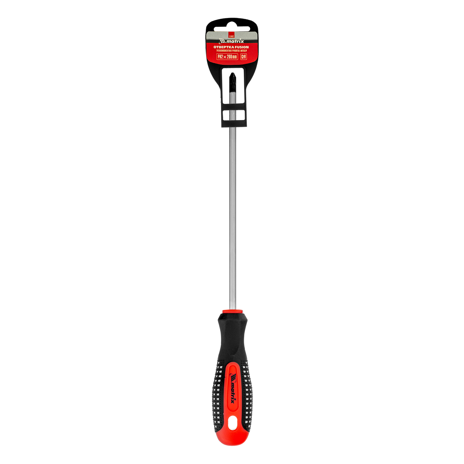 Отвертка Matrix Fusion 11442, PH2 х 200 мм, из стали CrV, с 3-х компонентной рукояткой «anti slip», предназначена для работ с резьбовым крепежом, имеющим крестообразный шлиц Phillips. Профессиональная отвертка пригодится при выполнении строительных, монтажных и ремонтных работ, а также при сборке мебели и ремонте автомобиля. Длина стержня 200 мм позволяет работать с крепежом в значительных углублениях.