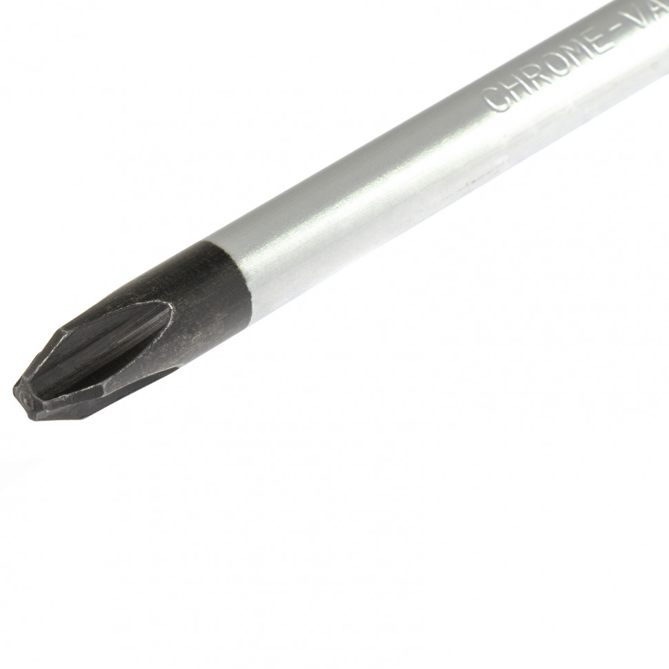 Стержень и жало выполнены из износостойкой легированной стали CrV твердостью 50-52 HRC, что обеспечивает долгий срок службы отвертки.