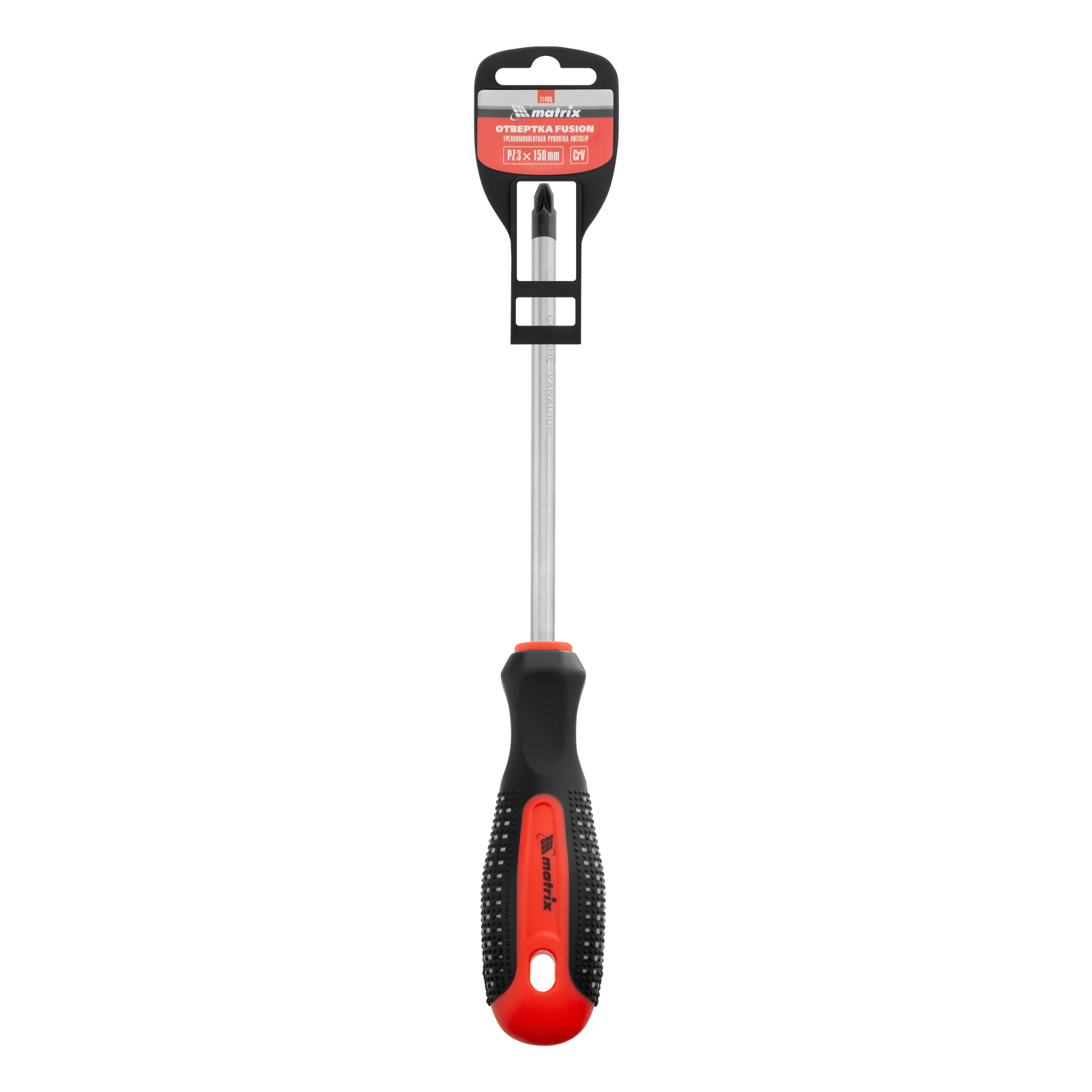 Отвертка Matrix Fusion 11405, PZ3 x 150 мм, CrV, с 3-х компонентной рукояткой «anti slip», используется для монтажа и демонтажа крепежных элементов калибра Pozidriv 3 с дополнительными ребрами на шлице. Она пригодится профессиональным мастерам при осуществлении строительных и монтажных работ. Длина стержня 150 мм оптимально подходит для работ на поверхностях и в углублениях.