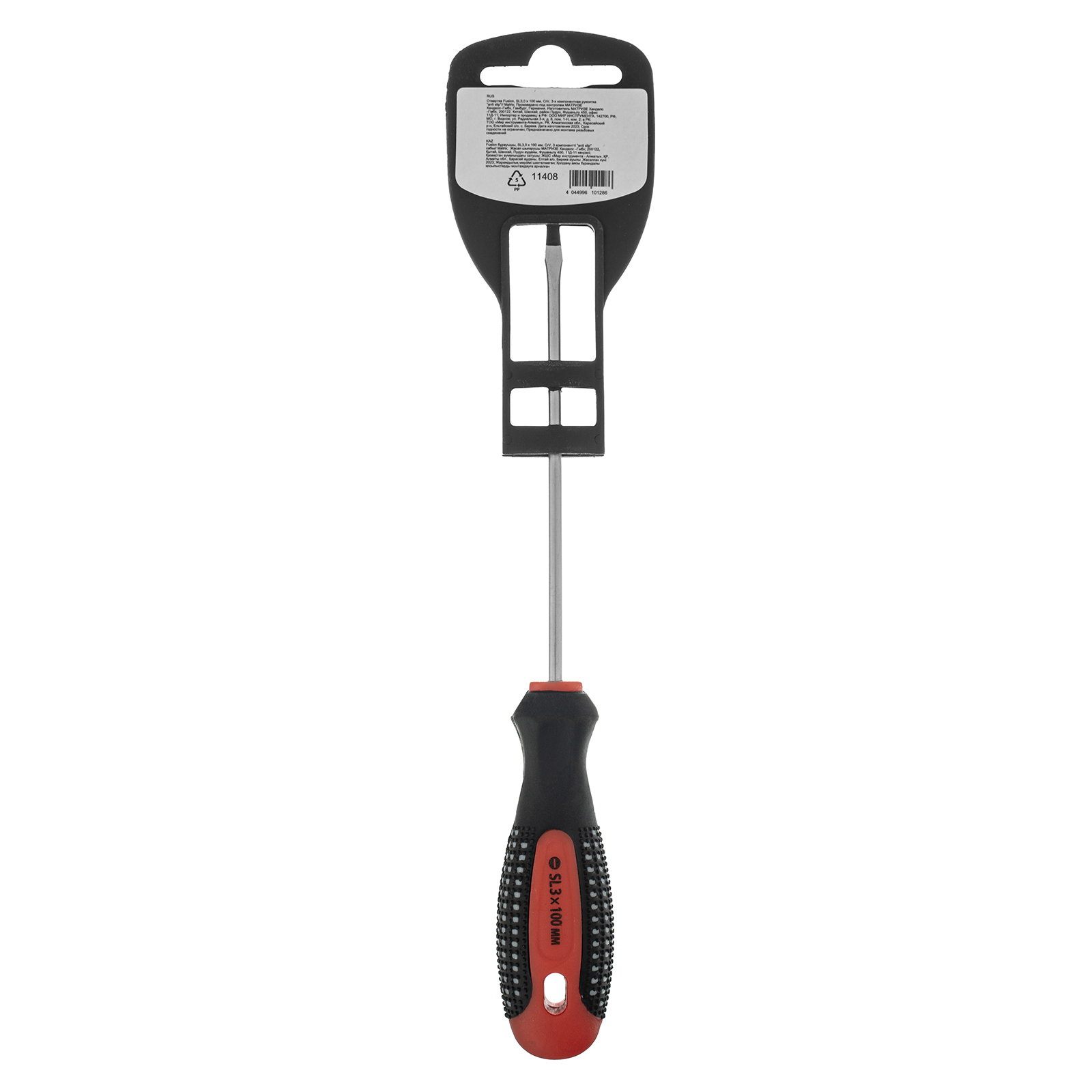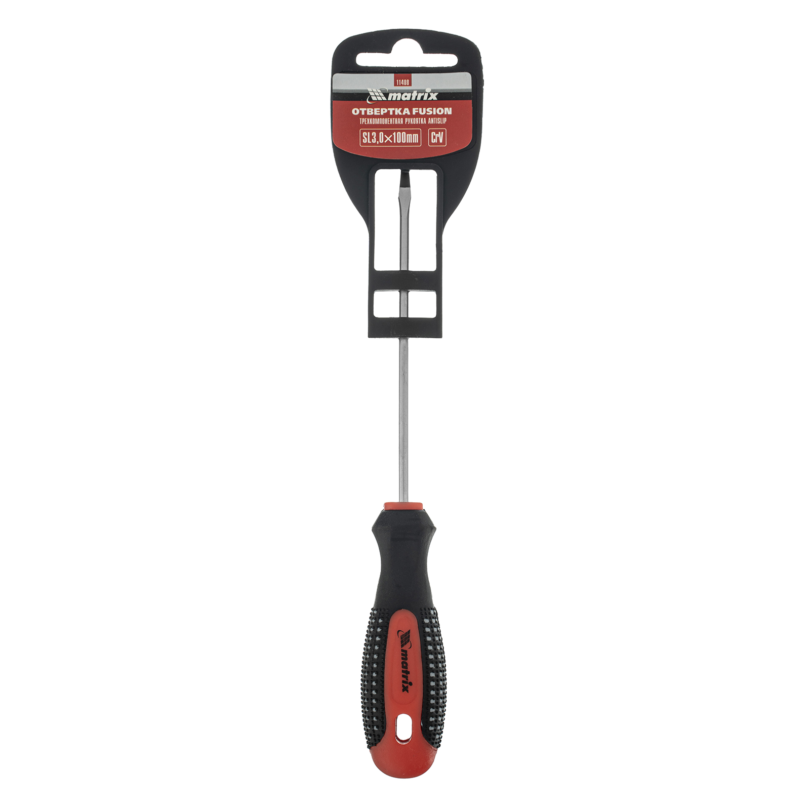 Отвертка Matrix Fusion 11408 под шлиц SL3,0, со стержнем длиной 100 мм, из стали CrV, с 3-компонентной рукояткой «anti slip», предназначена для завинчивания и отвинчивания резьбового крепежа со шлицем Slotted «минус». Рассчитана на профессиональное использование, используется для ремонта автомобилей, монтажа конструкций и решения других задач. Стержень длиной 100 мм делает отвертку оптимальным инструментом для работы с крепежом на поверхностях и в углублениях.
