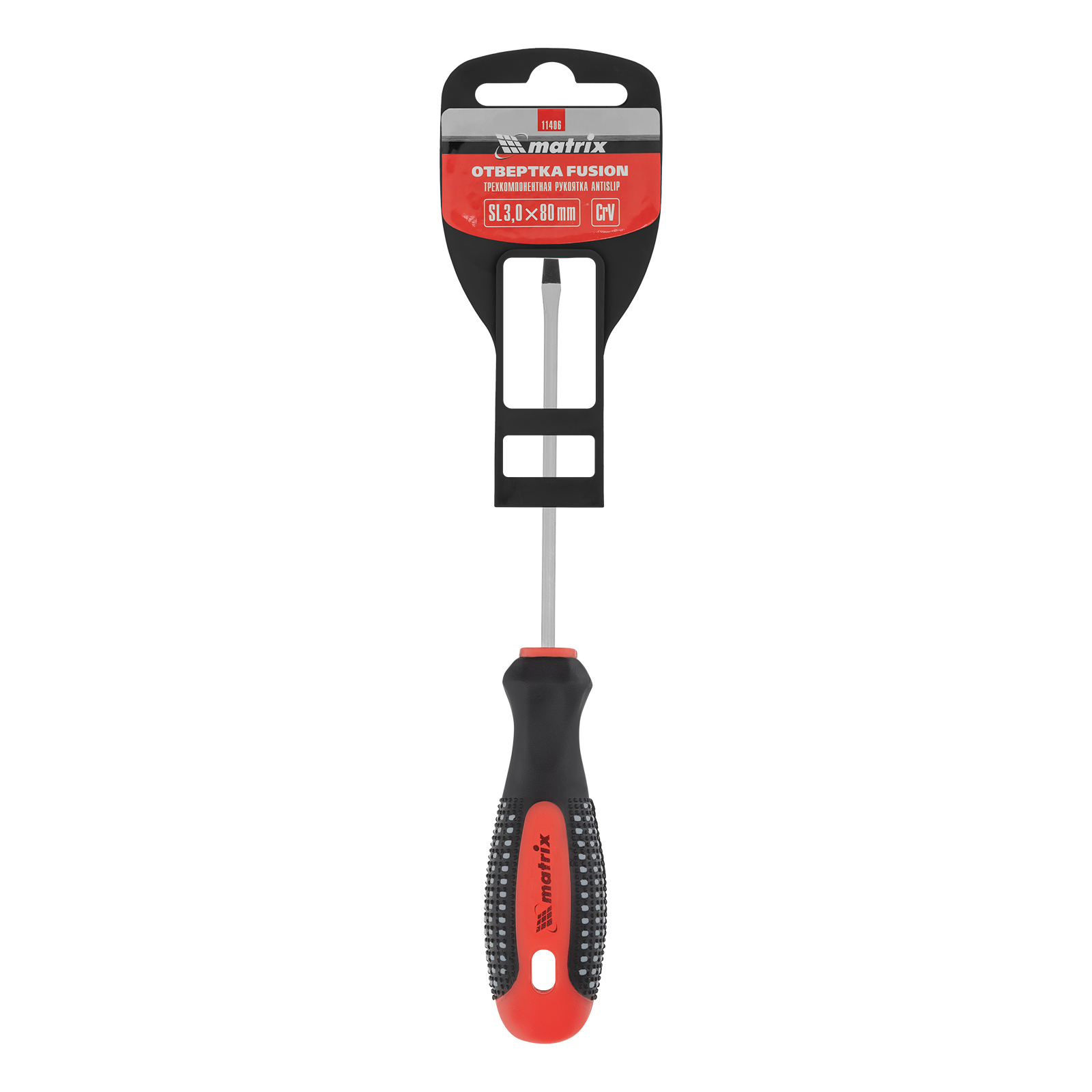 Отвертка Matrix Fusion 11406 под шлиц SL3,0, со стержнем длиной 80 мм, из стали CrV, с 3-компонентной рукояткой «anti slip», предназначена для завинчивания и отвинчивания резьбового крепежа со шлицем Slotted «минус». Рассчитана на профессиональное использование, используется для ремонта автомобилей, монтажа конструкций и решения других задач. Стержень длиной 80 мм делает отвертку оптимальным инструментом для работы с крепежом на поверхностях и в углублениях.