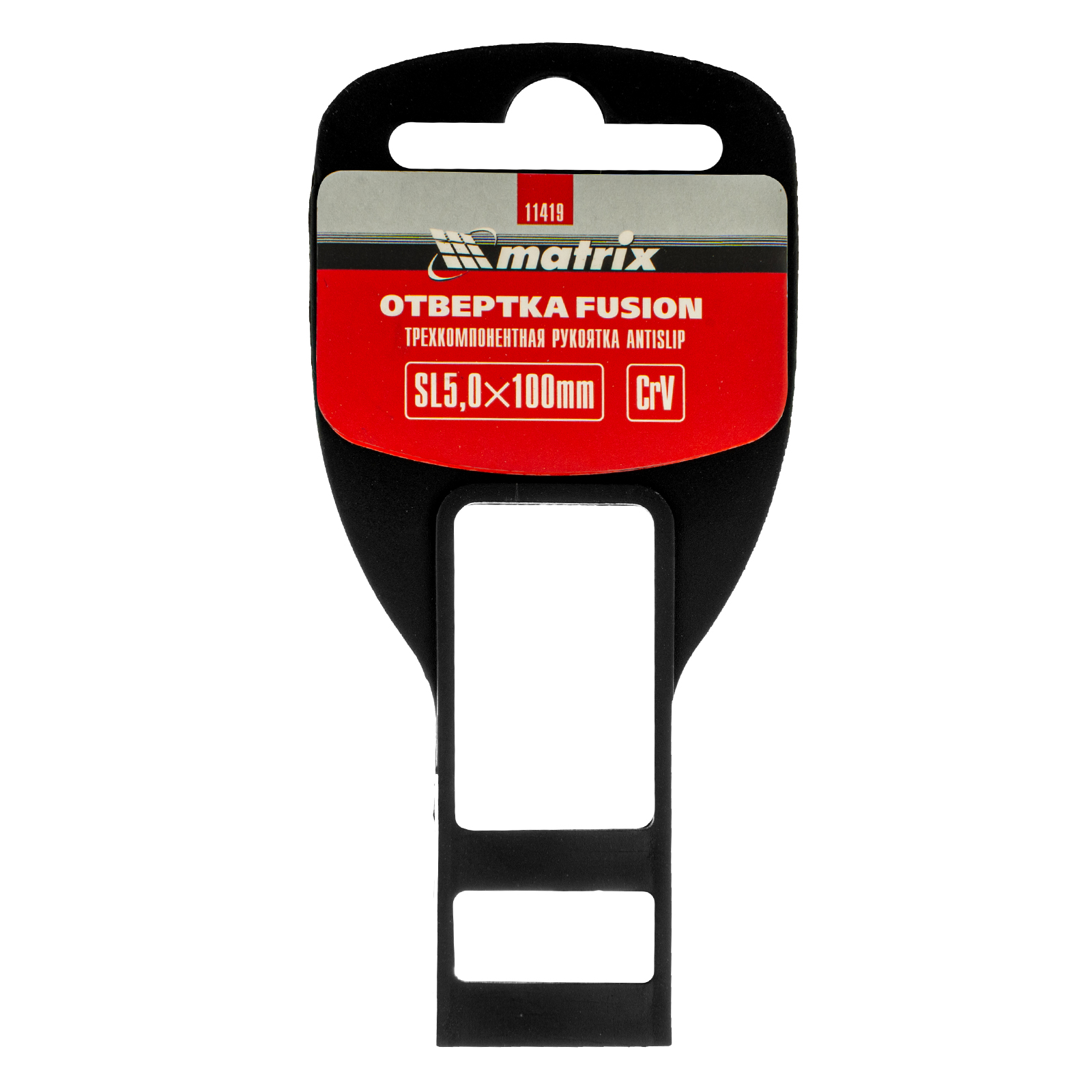 Отвертка Matrix Fusion 11419 под шлиц SL5,0, со стержнем длиной 100 мм, из стали CrV, с 3-компонентной рукояткой «anti slip», предназначена для завинчивания и отвинчивания резьбового крепежа со шлицем Slotted «минус». Рассчитана на профессиональное использование, используется для ремонта автомобилей, монтажа конструкций и решения других задач. Стержень длиной 100 мм делает отвертку оптимальным инструментом для работы с крепежом на поверхностях и в углублениях.