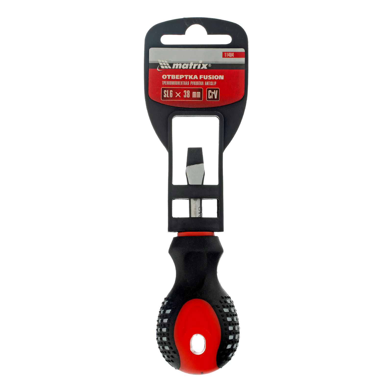 Отвертка Matrix Fusion 11404 под шлиц SL6,0, со стержнем длиной 38 мм, из стали CrV, с 3-компонентной рукояткой «anti slip», предназначена для завинчивания и отвинчивания резьбового крепежа со шлицем Slotted «минус». Рассчитана на профессиональное использование, используется для ремонта автомобилей, монтажа конструкций и решения других задач. Укороченный до 38 мм стержень делает отвертку оптимальным инструментом для работы в труднодоступных местах и ограниченном пространстве.