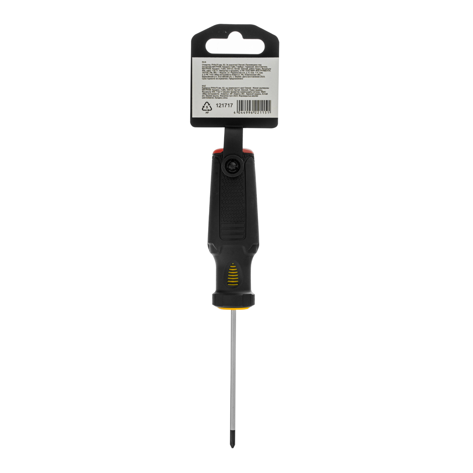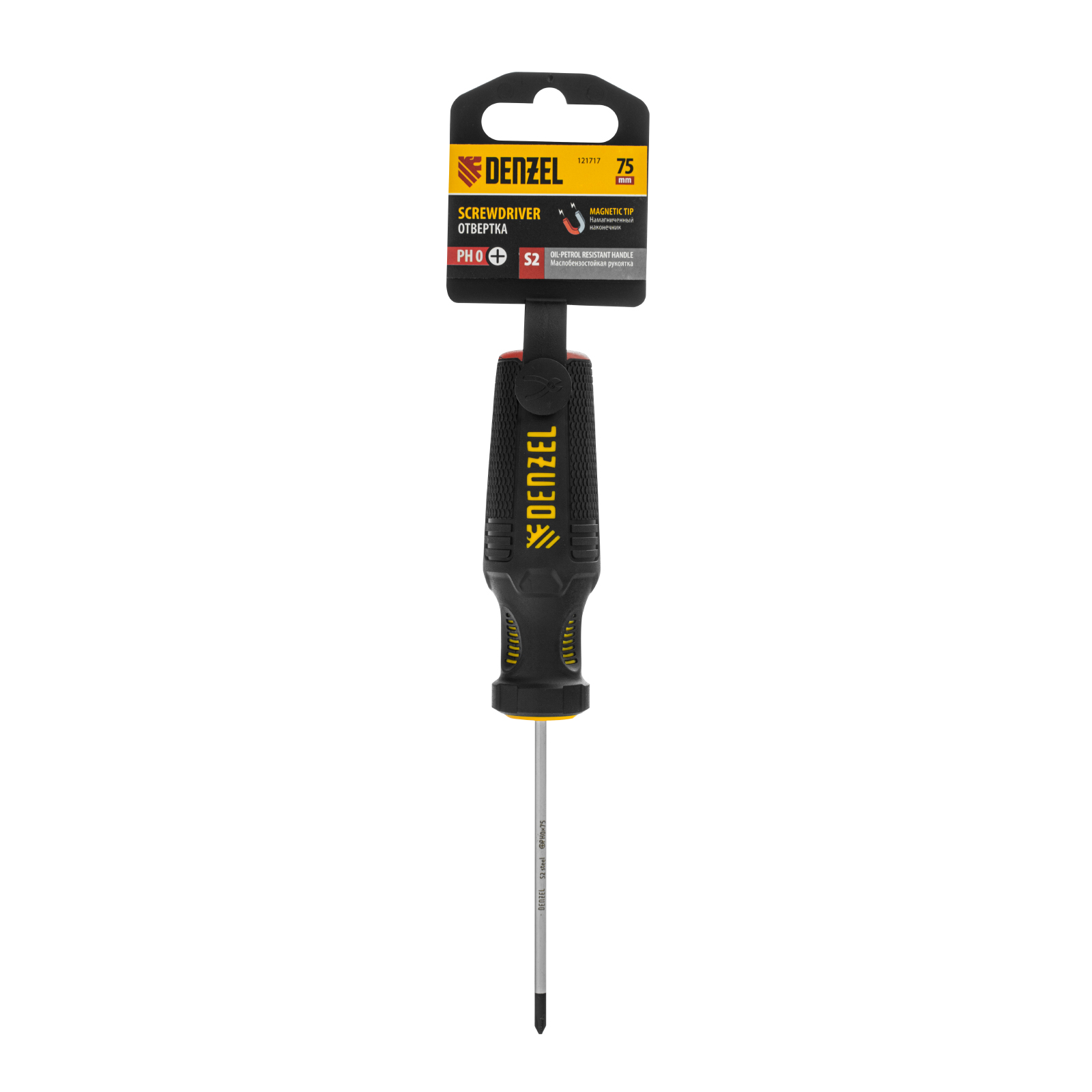 Отвертка Denzel 121717 с трехкомпонентной рукояткой, со стержнем из стали S2, длиной 75 мм, предназначена для закручивания и откручивания резьбового крепежа типа PH0. Высокоточный намагниченный шлиц избавляет мастера от необходимости придерживать винт или саморез рукой. Отвертка рекомендована для профессионального использования.