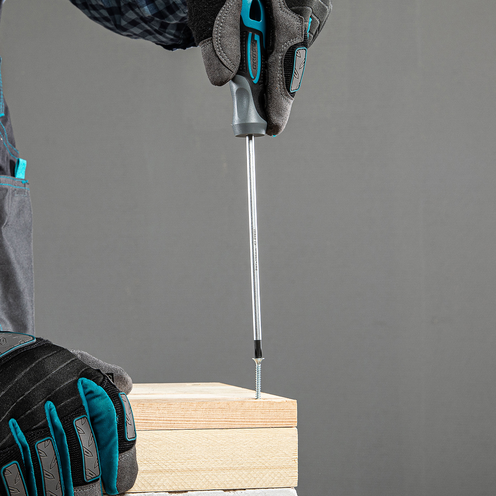 - Быстрый поиск нужного инструмента — на затыльнике рукоятки и стержне обозначены тип шлица и длина стержня.