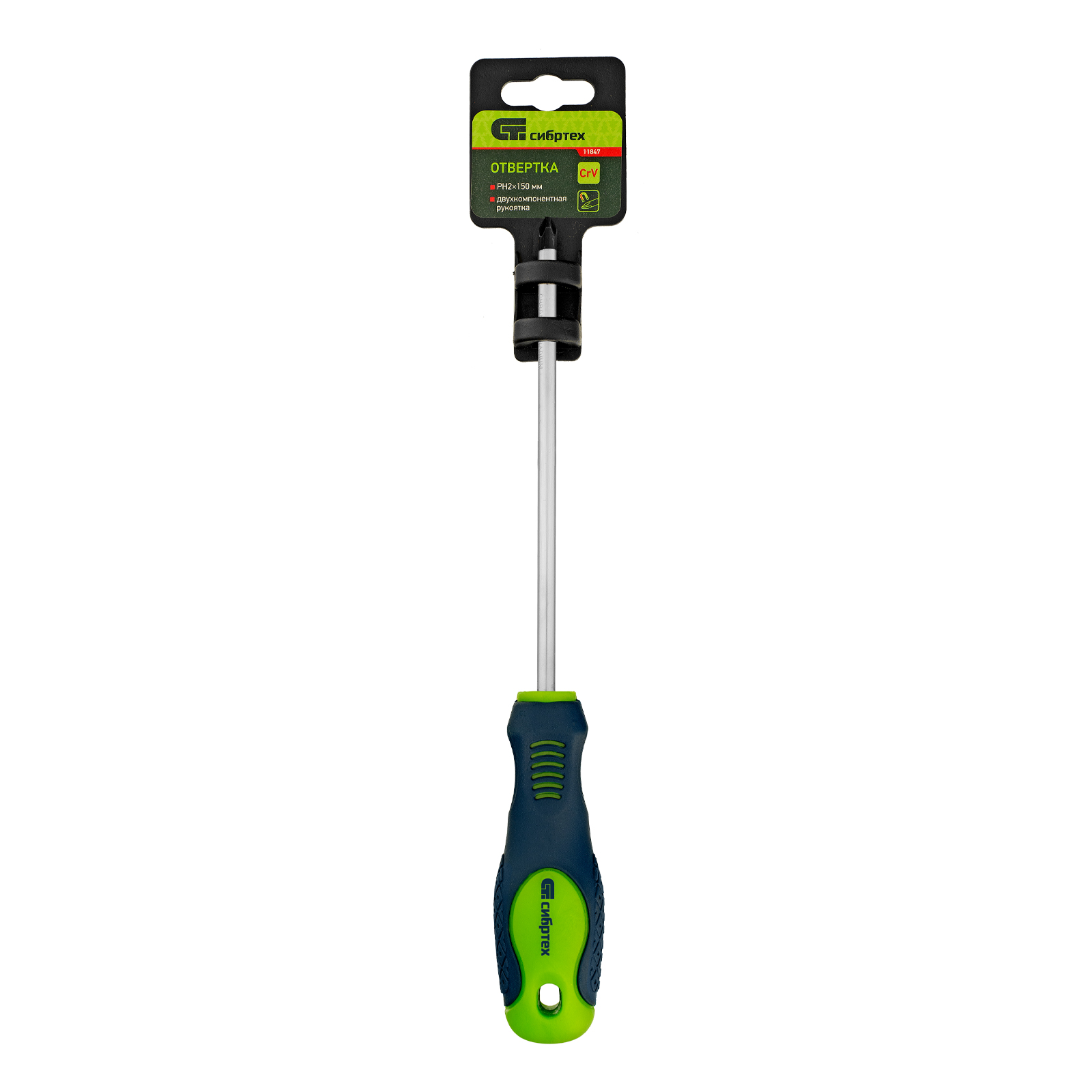 Отвертка Сибртех 11847 типоразмера PH2 х 150 мм, из стали CrV, с двухкомпонентной рукояткой и крестовым шлицем, позволяет проводить монтаж/демонтаж крепежных элементов типа Phillips. Подходит для работы в углублениях. Полупрофессиональная отвертка поможет отремонтировать бытовую технику, повесить полки, собрать мебель и выполнить другие работы.