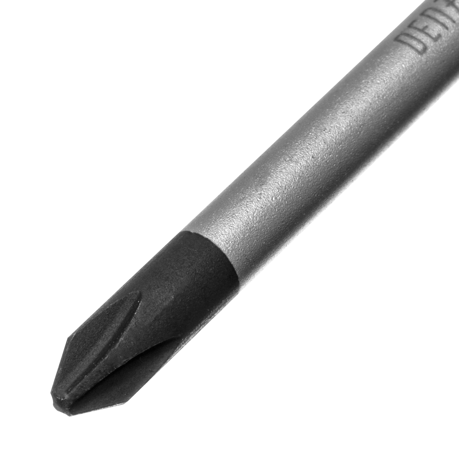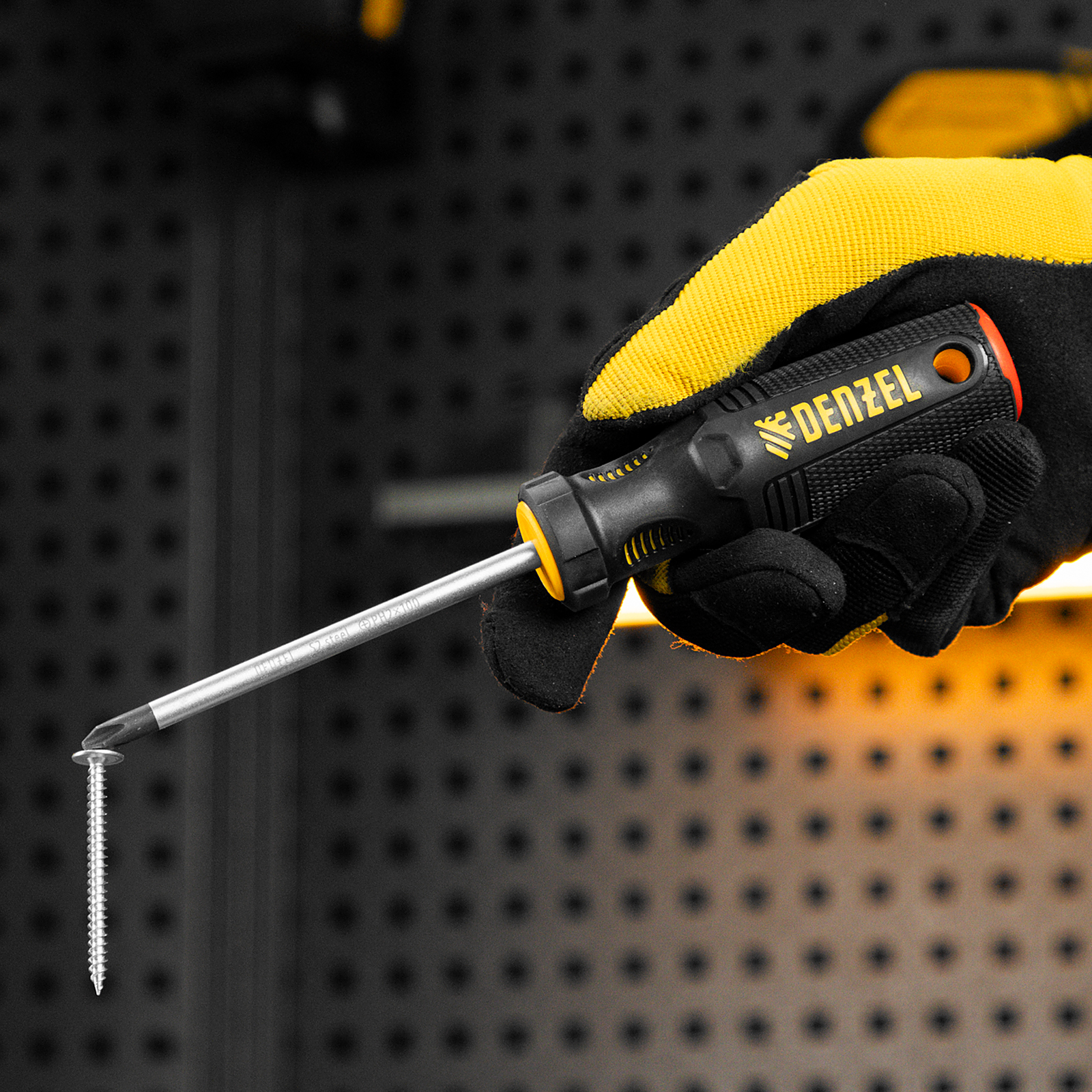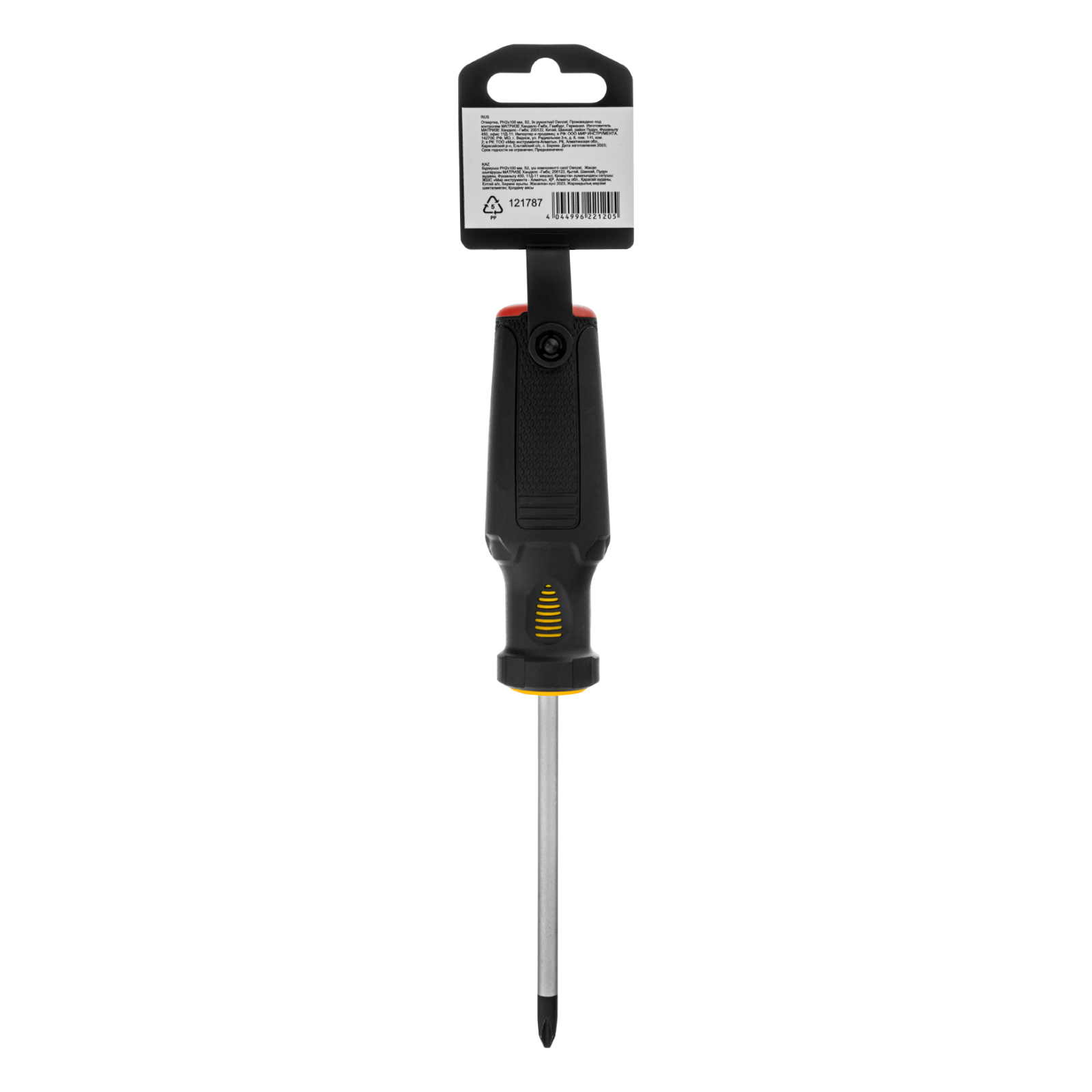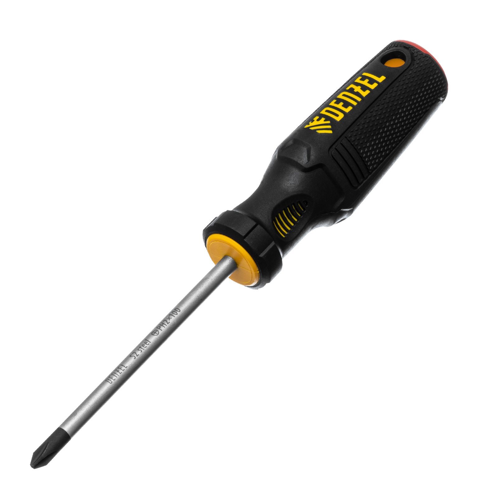 Отвертка Denzel 121787 с трехкомпонентной рукояткой, со стержнем из стали S2, длиной 100 мм, предназначена для закручивания и откручивания резьбового крепежа типа PH2. Высокоточный намагниченный шлиц избавляет мастера от необходимости придерживать винт или саморез рукой. Отвертка рекомендована для профессионального использования.