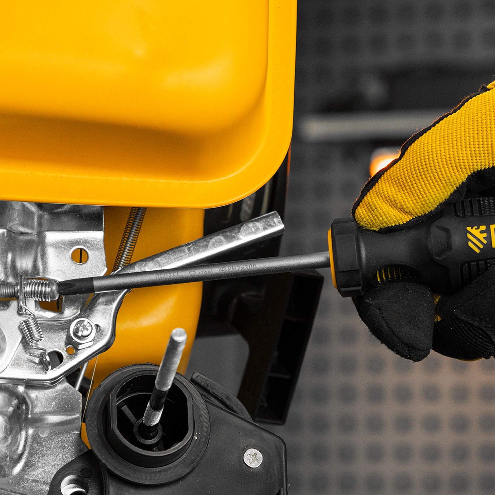 - Удобное хранение — отверстие в рукоятке позволяет подвешивать отвертку на крючок или скобу.