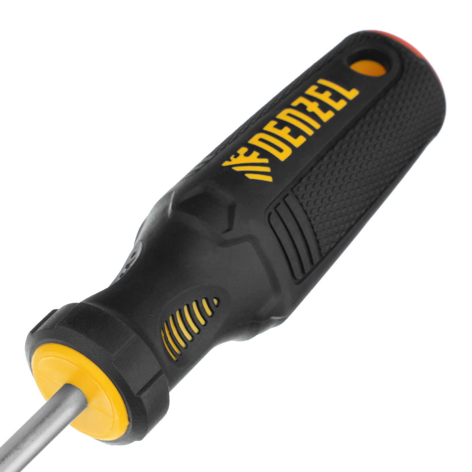 Отвертка PH2 х 200 мм Denzel 12182 из стали CrV, с трехкомпонентной рукояткой, предназначена для закручивания и откручивания резьбовых крепежей типа Philips. Шлиц намагничен, что избавляет от необходимости придерживать винт или саморез рукой. Отвертка рекомендована для профессионального использования.