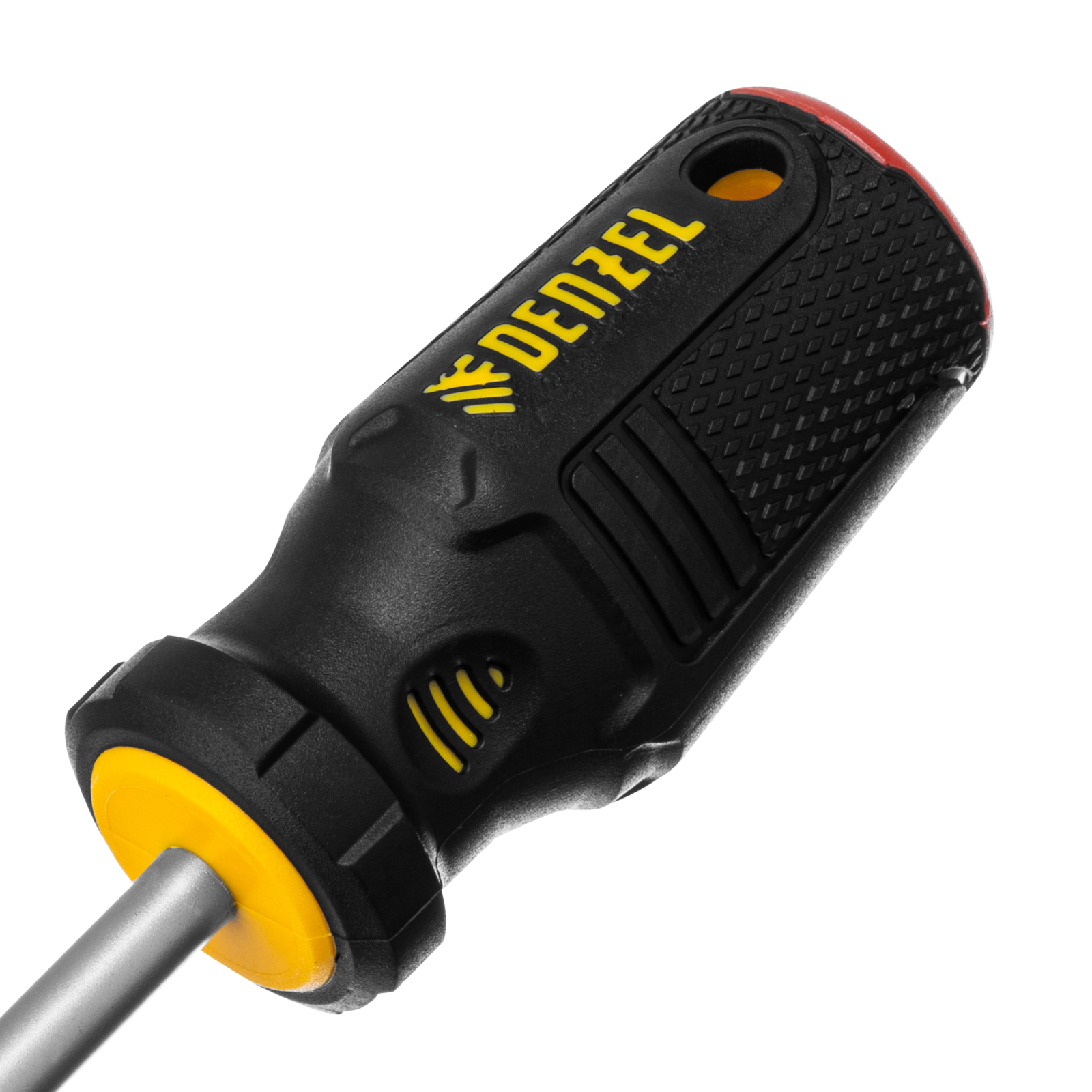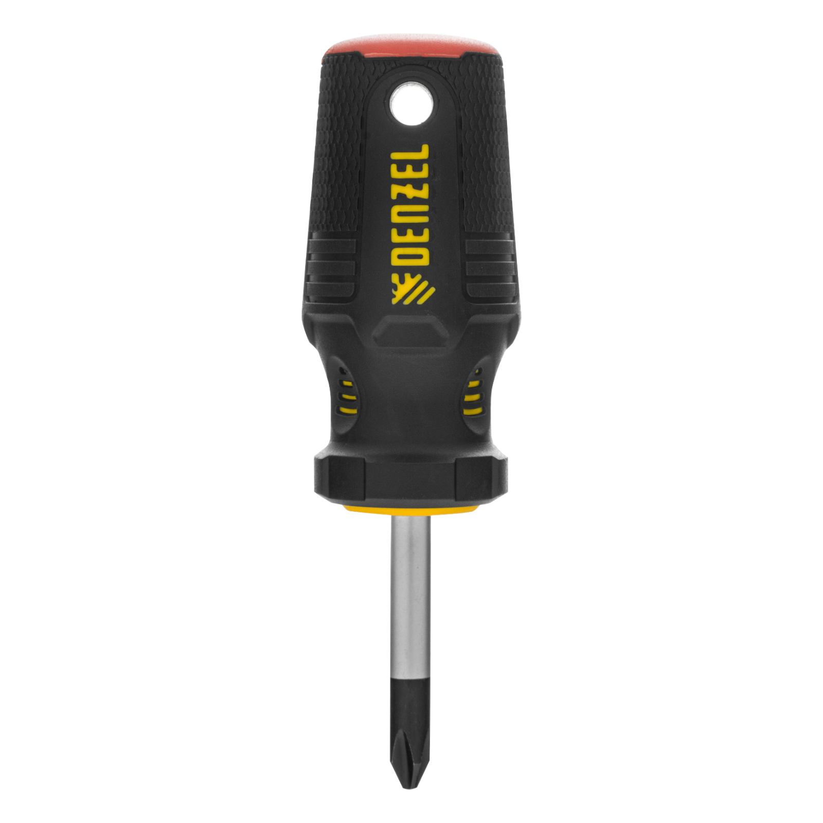 Отвертка Denzel 121867 с трехкомпонентной рукояткой, со стержнем из стали S2, длиной 38 мм, предназначена для закручивания и откручивания резьбового крепежа типа PH2. Удобна для работы в ограниченном пространстве. Высокоточный намагниченный шлиц избавляет мастера от необходимости придерживать винт или саморез рукой. Отвертка рекомендована для профессионального использования.