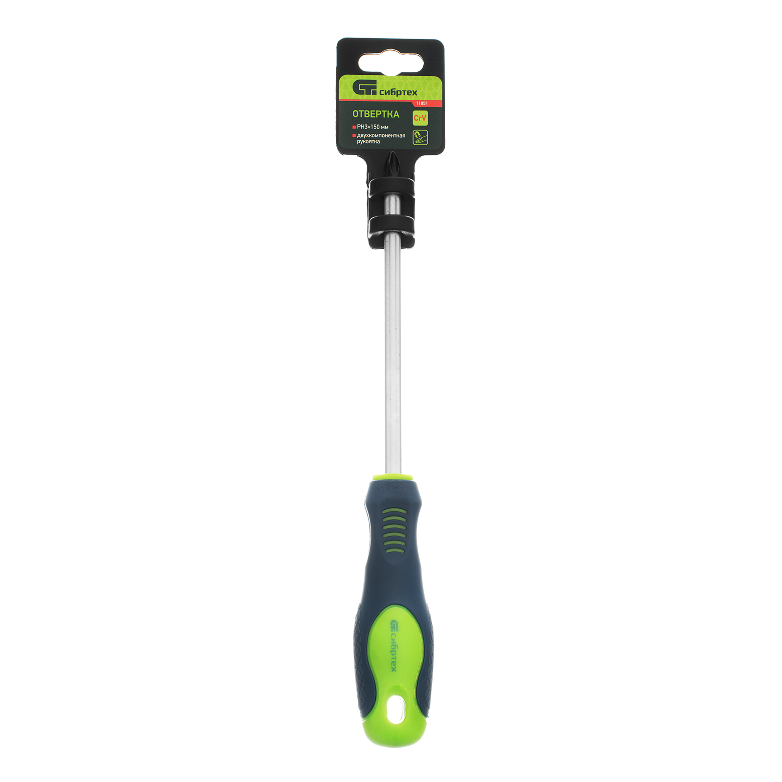 Отвертка Сибртех 11851 типоразмера PH3 х 150 мм, из стали CrV, с двухкомпонентной рукояткой и крестовым шлицем, позволяет проводить монтаж/демонтаж крепежных элементов типа Phillips. Подходит для работы в углублениях. Полупрофессиональная отвертка поможет отремонтировать бытовую технику, повесить полки, собрать мебель и выполнить другие работы.