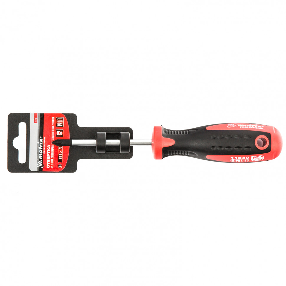 Отвертка Matrix «Profi» 11840 длиной 75 мм, из стали S2, с двухкомпонентной рукояткой, служит для монтажа и демонтажа резьбовых соединений типоразмера PH1. Профессиональная отвертка станет незаменимым помощником при осуществлении монтажных, строительных и ремонтных работ. Благодаря стержню длиной 75 мм можно закручивать и откручивать крепеж в углублениях.