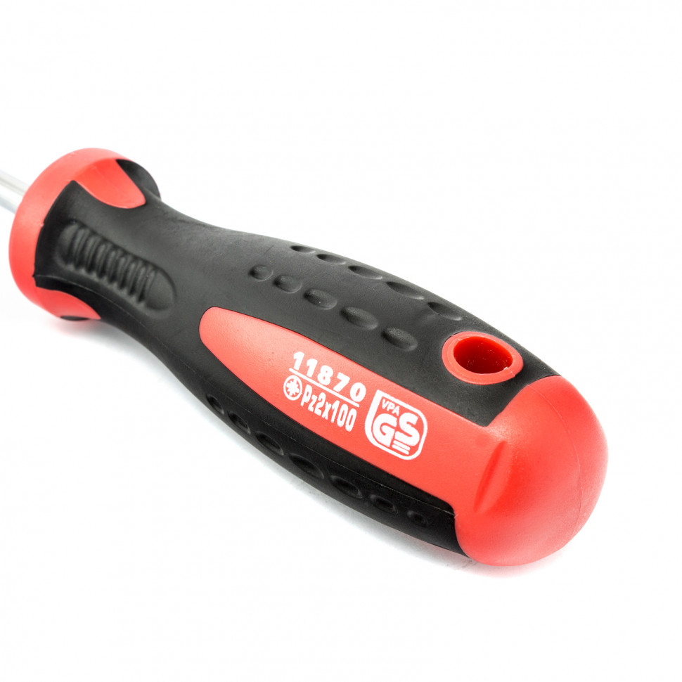 Отвертка Matrix «Profi» 11870, PZ2 х 100 мм, из стали S2, с двухкомпонентной рукояткой, служит для монтажа и демонтажа саморезов, винтов и др. крепежа типа Pozidriv. Крестовая отвертка с 4 дополнительными ребрами на шлице обеспечивает высокую точность работ и предотвращает проскальзывание шлица в головке крепежа. Профессиональная отвертка станет незаменимым помощником при осуществлении монтажных, строительных и ремонтных работ. Благодаря стержню длиной 100 мм можно закручивать и откручивать крепеж в углублениях.