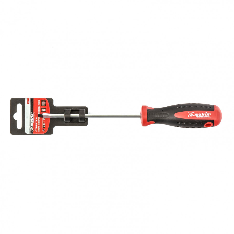 Отвертка Matrix «Profi» 11816, SL5,5 х 125 мм, из стали S2, с двухкомпонентной рукояткой, служит для монтажа и демонтажа крепежа со шлицем Slotted «минус». Профессиональная отвертка станет незаменимым помощником при осуществлении монтажных, строительных и ремонтных работ. Благодаря стержню длиной 125 мм можно закручивать и откручивать крепеж в углублениях.