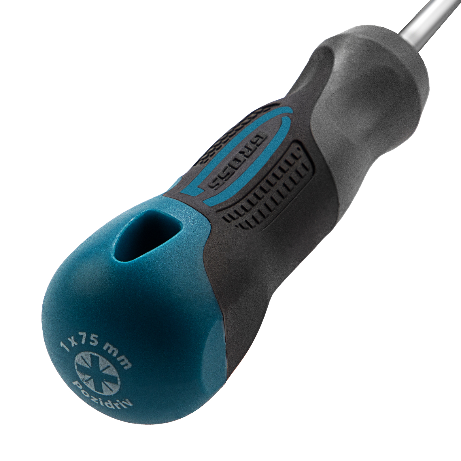 Отвертка Gross 12156, PZ1 x 75 мм, из стали S2, с трехкомпонентной рукояткой, пригодится для монтажа и демонтажа крепежных элементов типа Pozidriv. Крестовой шлиц с 4 дополнительными насечками не проскальзывает в головке крепежа, что обеспечивает высокую точность работы. Отвертка выдерживает интенсивные нагрузки и рассчитана на профессиональное использование.