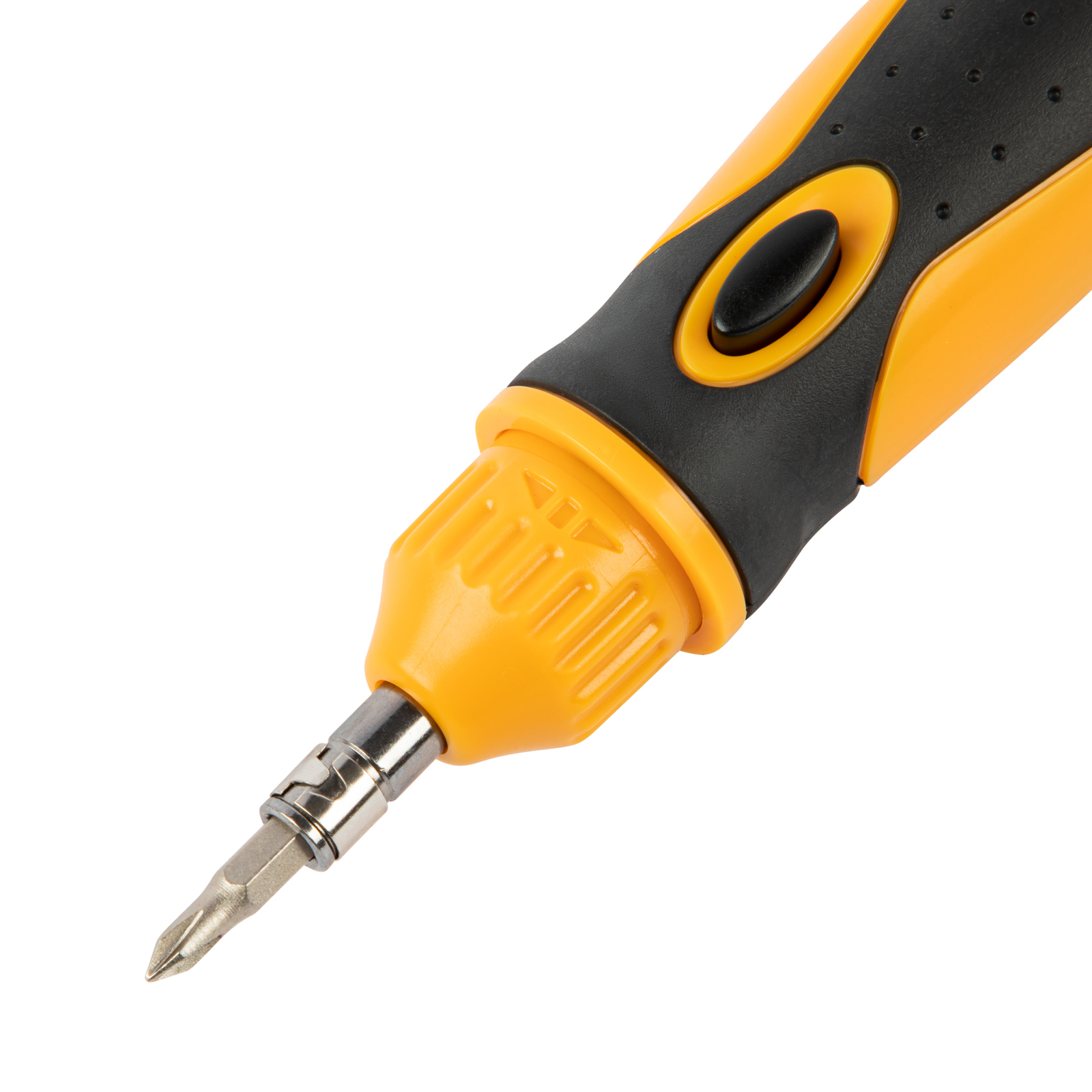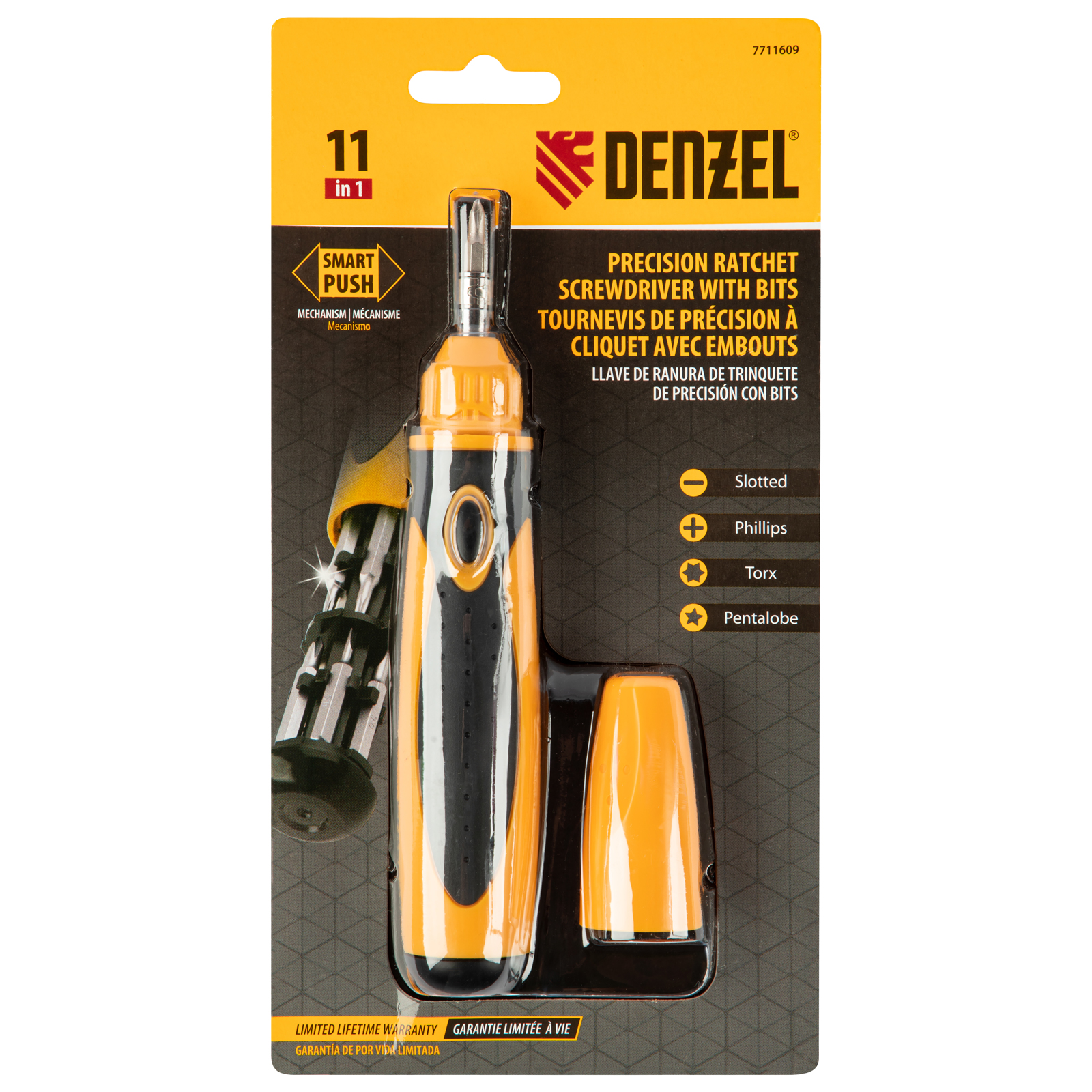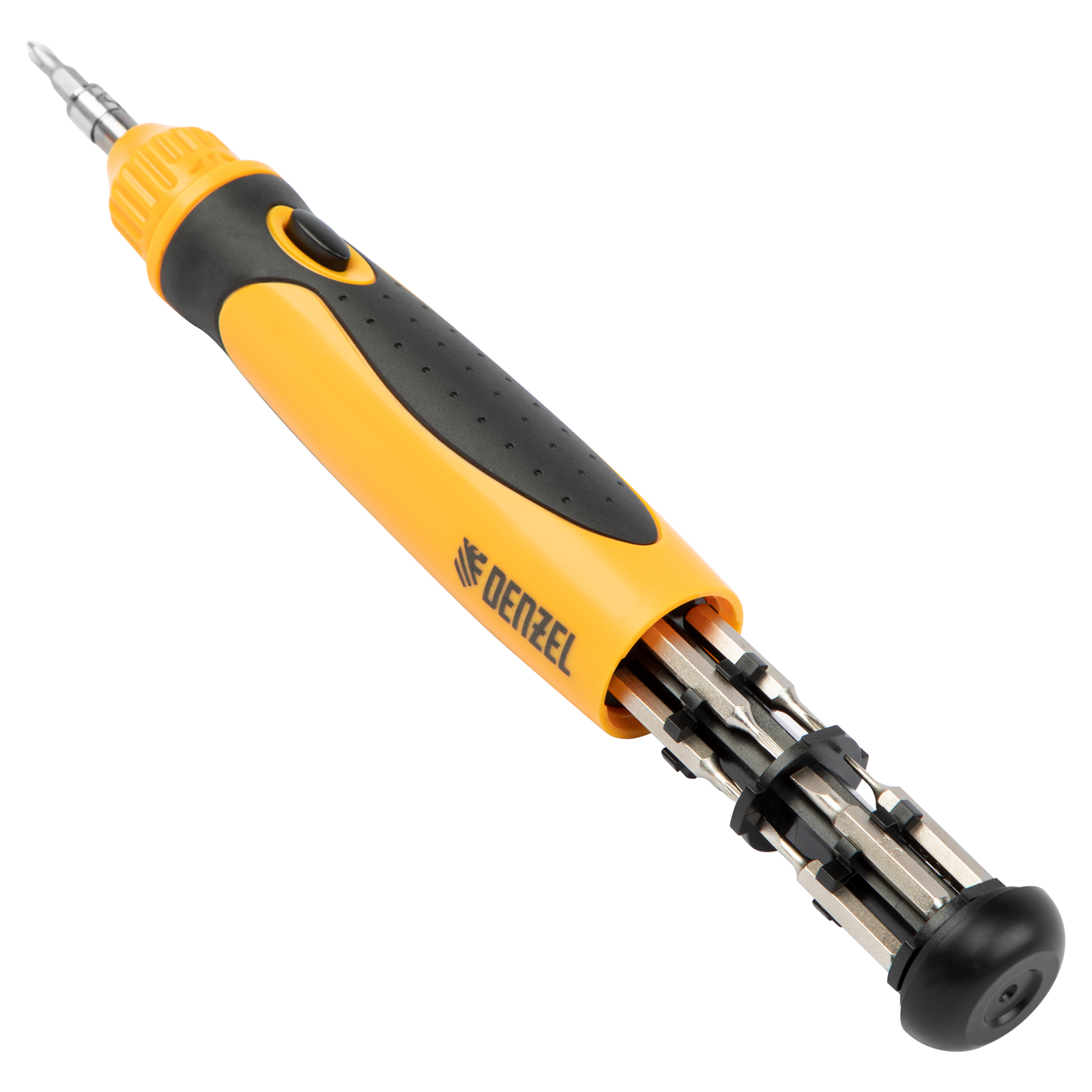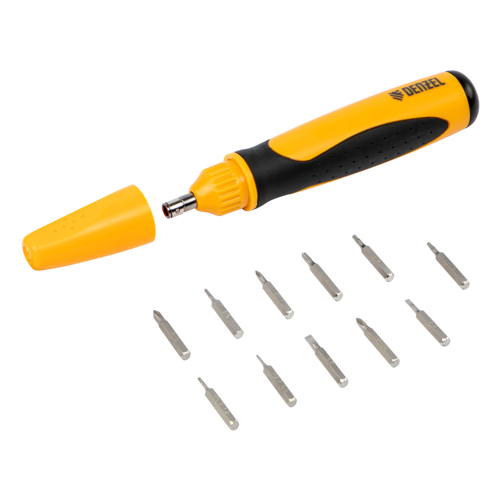 Реверсивная отвертка Denzel mini 7711609 с механизмом Smart Push комплектуется 11 сменными битами из стали CrMo для точных работ с маленькими деталями. С ее помощью можно отремонтировать электротехнику, часы, очки, детские игрушки, мелкие бытовые приборы и т.д. Реверсивный механизм повышает удобство и скорость работы, снижая усталость рук. Отвертка станет незаменимым помощником в доме и мастерской.