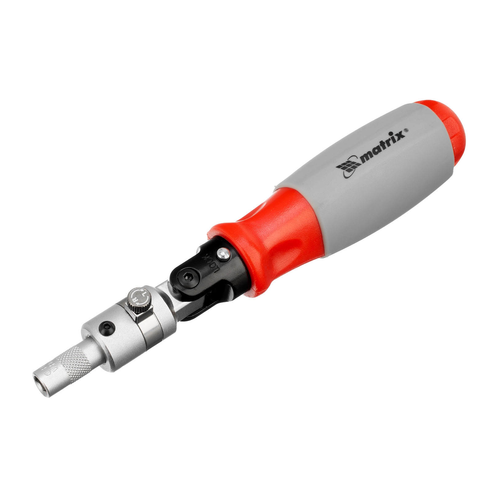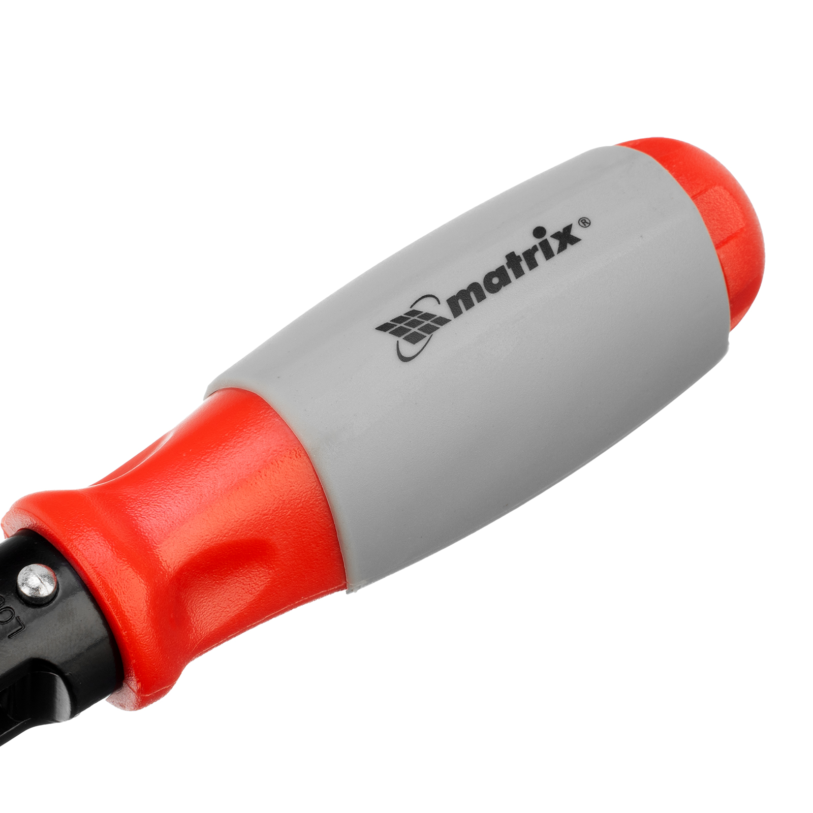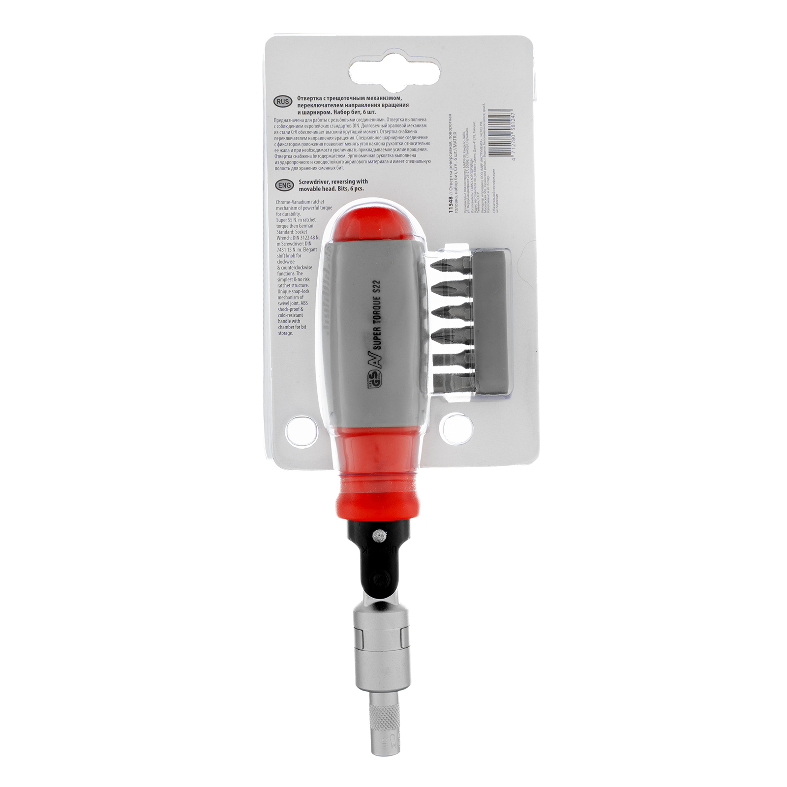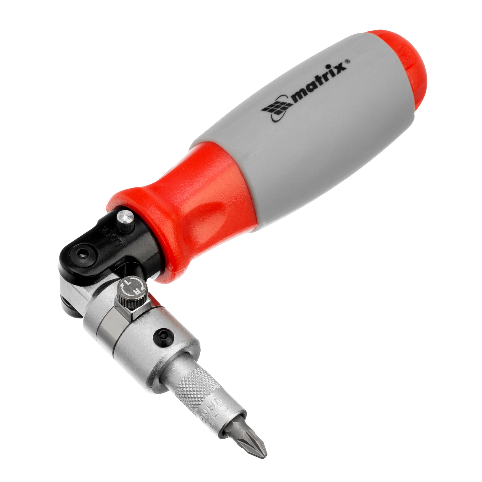 Реверсивная отвертка Matrix 11548 с поворотной головкой, с набором бит из стали CrV, 6 шт. в упаковке, используется для закручивания и откручивания резьбовых соединений и является отличной альтернативой набору отверток. Храповой механизм избавляет от необходимости перехватывать ручку по время работы. Переключатель реверса позволяет вращать рабочую часть как по часовой стрелке, так и против нее. В комплекте имеются насадки со шлицами PH, PZ и SL. Набор рекомендован для профессионального применения.