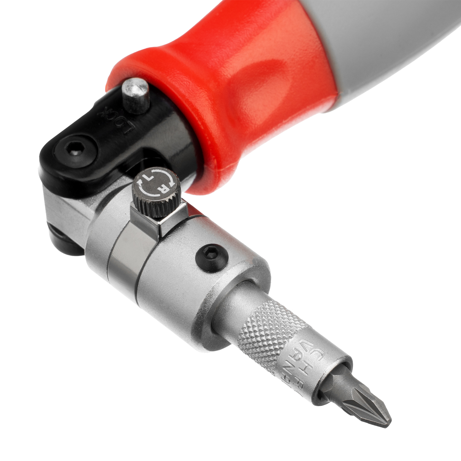- Комфортная работа в труднодоступных местах — отвертка имеет поворотную головку с фиксатором положения.