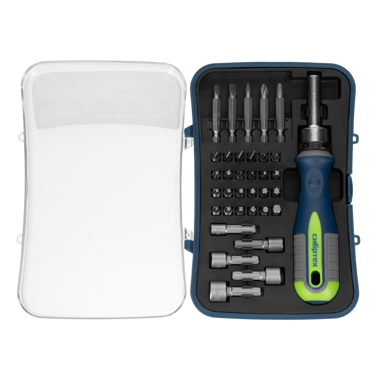 Реверсивная отвертка с набором бит и торцевыми головками Сибртех 13337, 35 инструментов, CrV, станет незаменимым помощником для частных мастеров при проведении ремонтных и монтажных работ. Удлиненные биты облегчают монтаж/демонтаж крепежных элементов в труднодоступных местах, торцевые головки позволяют работать с гайками, болтами, кровельными саморезами, имеющими внешний шестигранник и т.д.