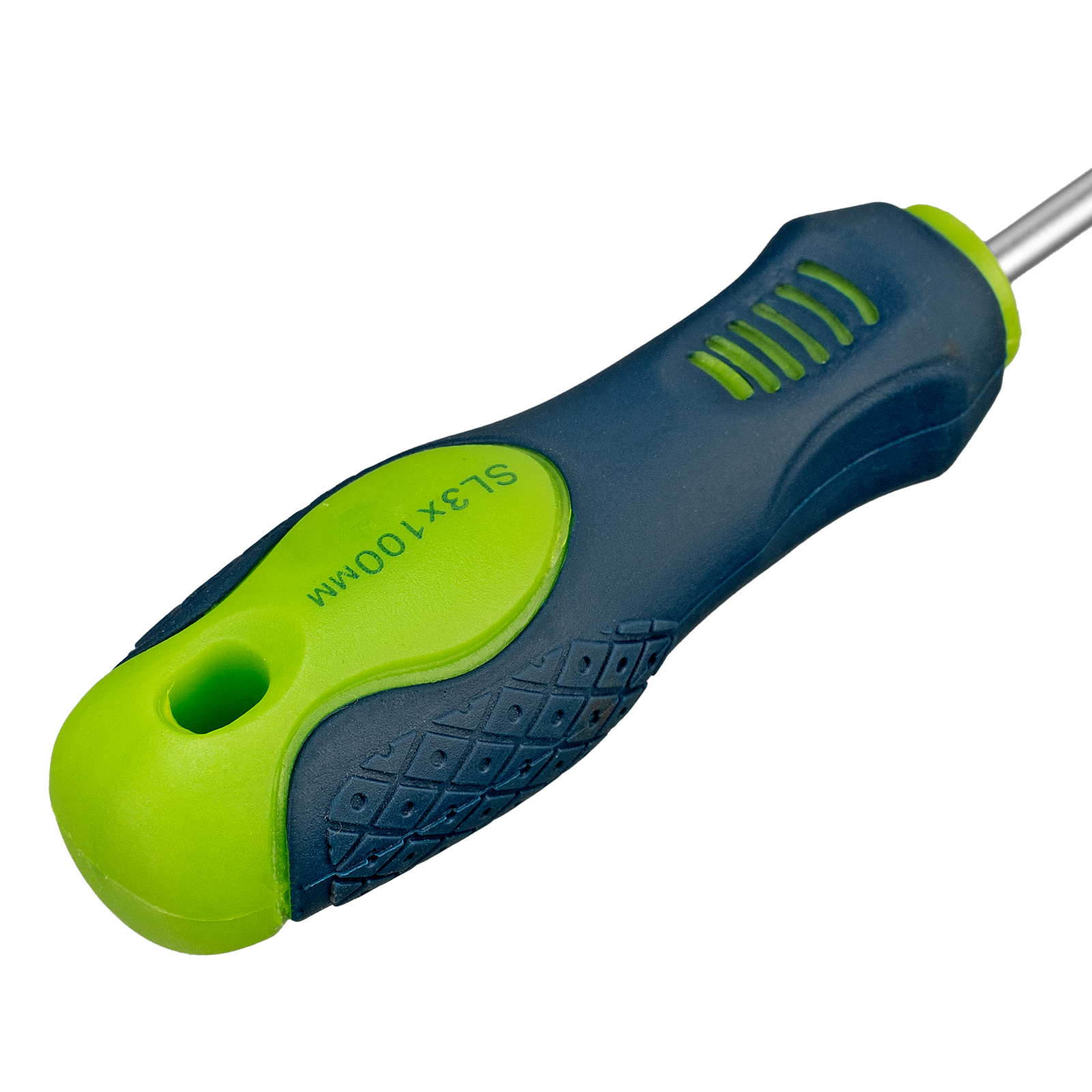 Отвертка Сибртех 11857, SL3,0 х 100 мм, из стали CrV, с 2-х компонентной рукояткой, подходит для работ, не требующих большого усилия затяжки. С ее помощью осуществляется монтаж/демонтаж крепежных элементов типа Slotted. Отвертка оснащена стержнем длиной 100 мм для работ в углублениях и на поверхностях. Инструмент пригодится для полупрофессионального применения.