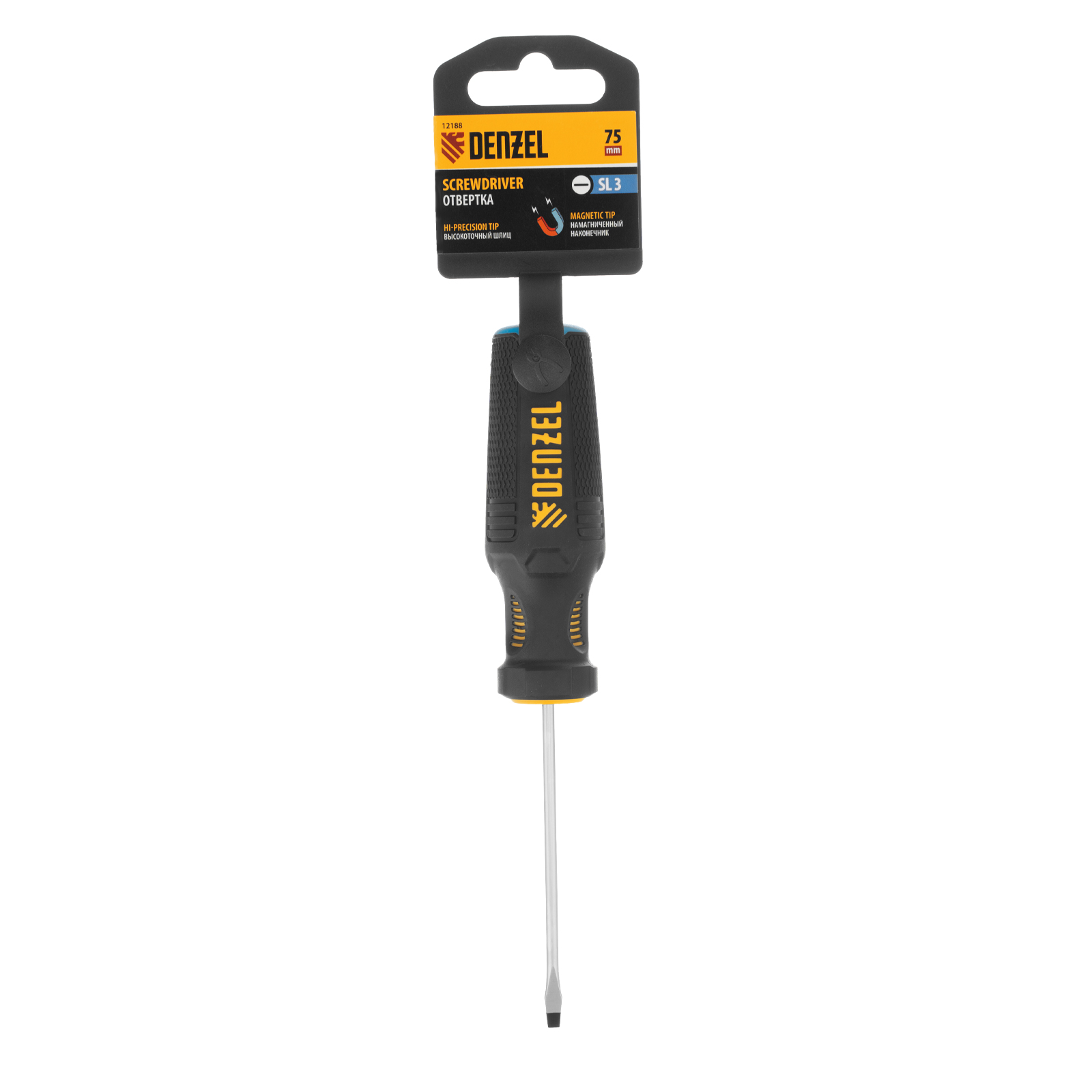Отвертка SL3 х 75 мм Denzel 12188 из стали CrV, с трехкомпонентной рукояткой, используется для монтажа и демонтажа винтов и саморезов с прямым шлицем Slotted. Намагниченный шлиц крепко фиксируется в головке крепежа. Отвертка выдерживает интенсивное применение и предназначена для выполнения профессиональных ремонтных и монтажных работ.