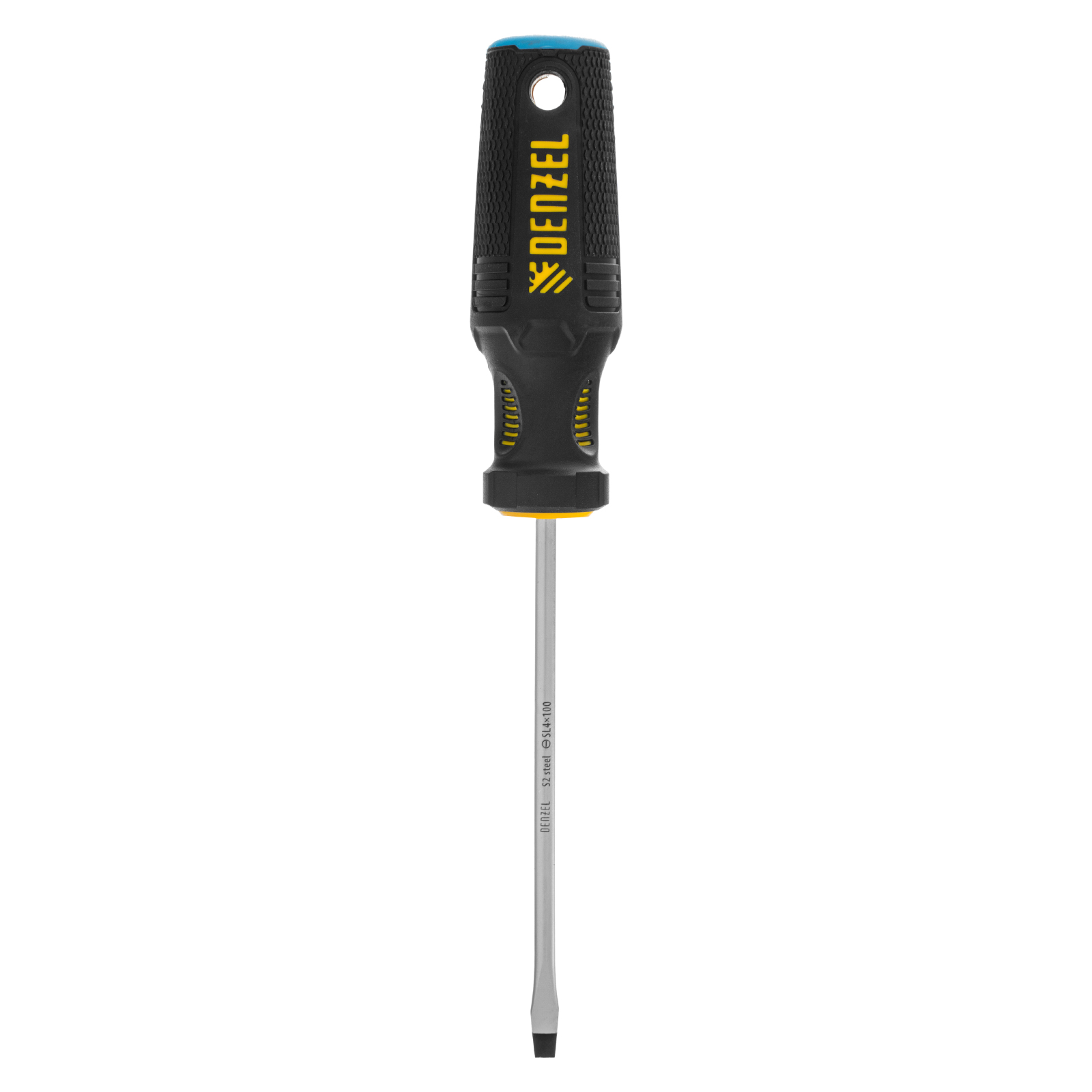 Отвертка Denzel 121927 с трехкомпонентной рукояткой, со стержнем из стали S2, длиной 100 мм, предназначена для монтажа и демонтажа винтов и саморезов с прямым шлицем SL4. Высокоточный намагниченный шлиц крепко фиксируется в головке крепежа. Отвертка выдерживает интенсивное применение, предназначена для выполнения профессиональных ремонтных и монтажных работ.