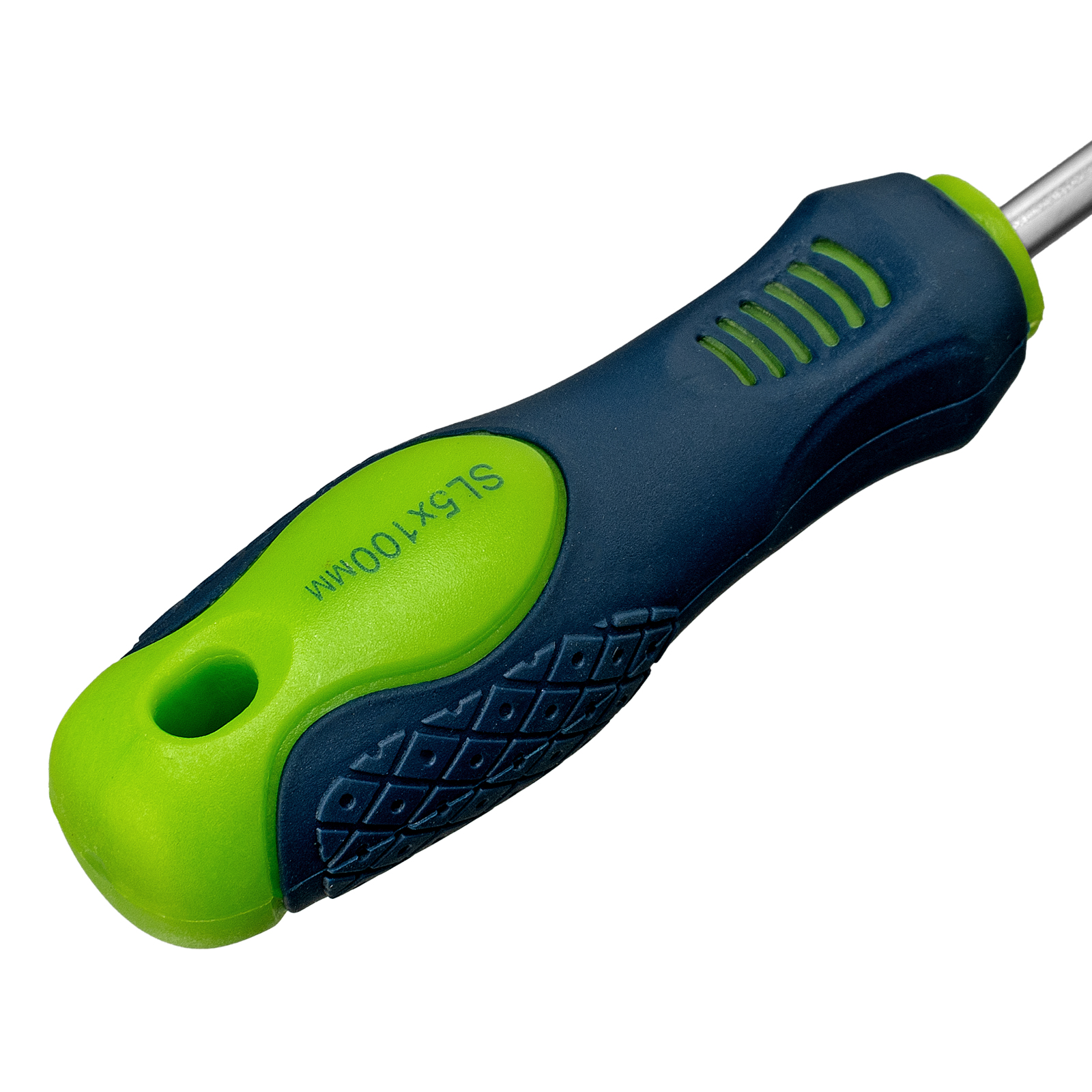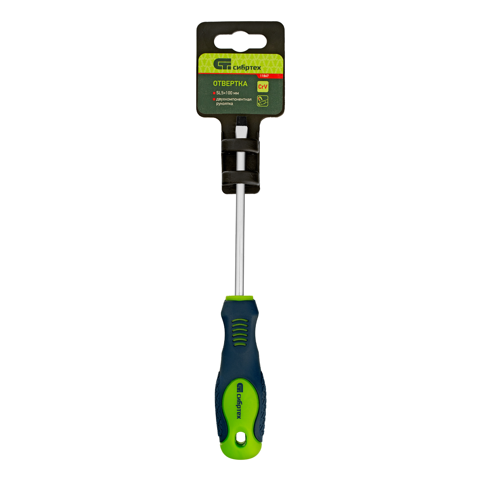 Отвертка Сибртех 11867, SL5,0 х 100 мм, из стали CrV, с 2-х компонентной рукояткой, подходит для работ, не требующих большого усилия затяжки. С ее помощью осуществляется монтаж/демонтаж крепежных элементов типа Slotted. Отвертка оснащена стержнем длиной 100 мм для работ в углублениях и на поверхностях. Инструмент пригодится для полупрофессионального применения.