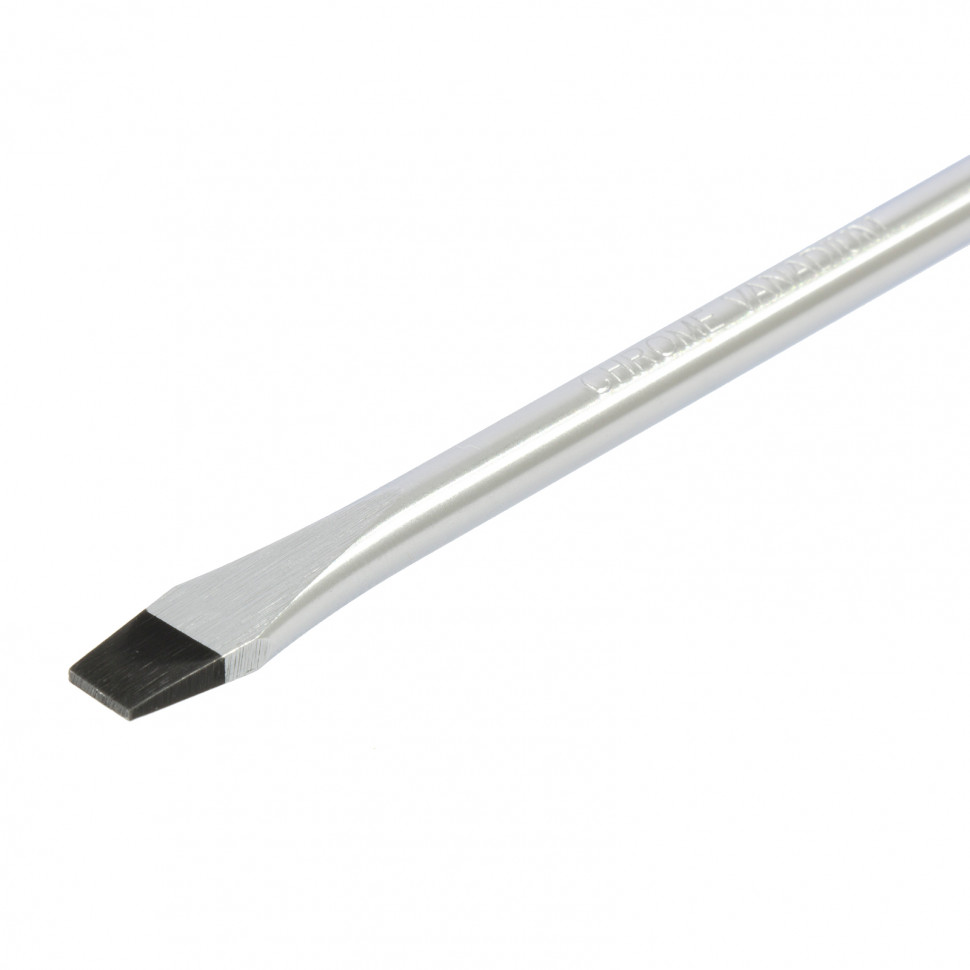 - Отвертка отличается высоким качеством исполнения — стержень изготовлен из хромованадиевой стали, а шлиц закален до твердости 50-55 HRC.