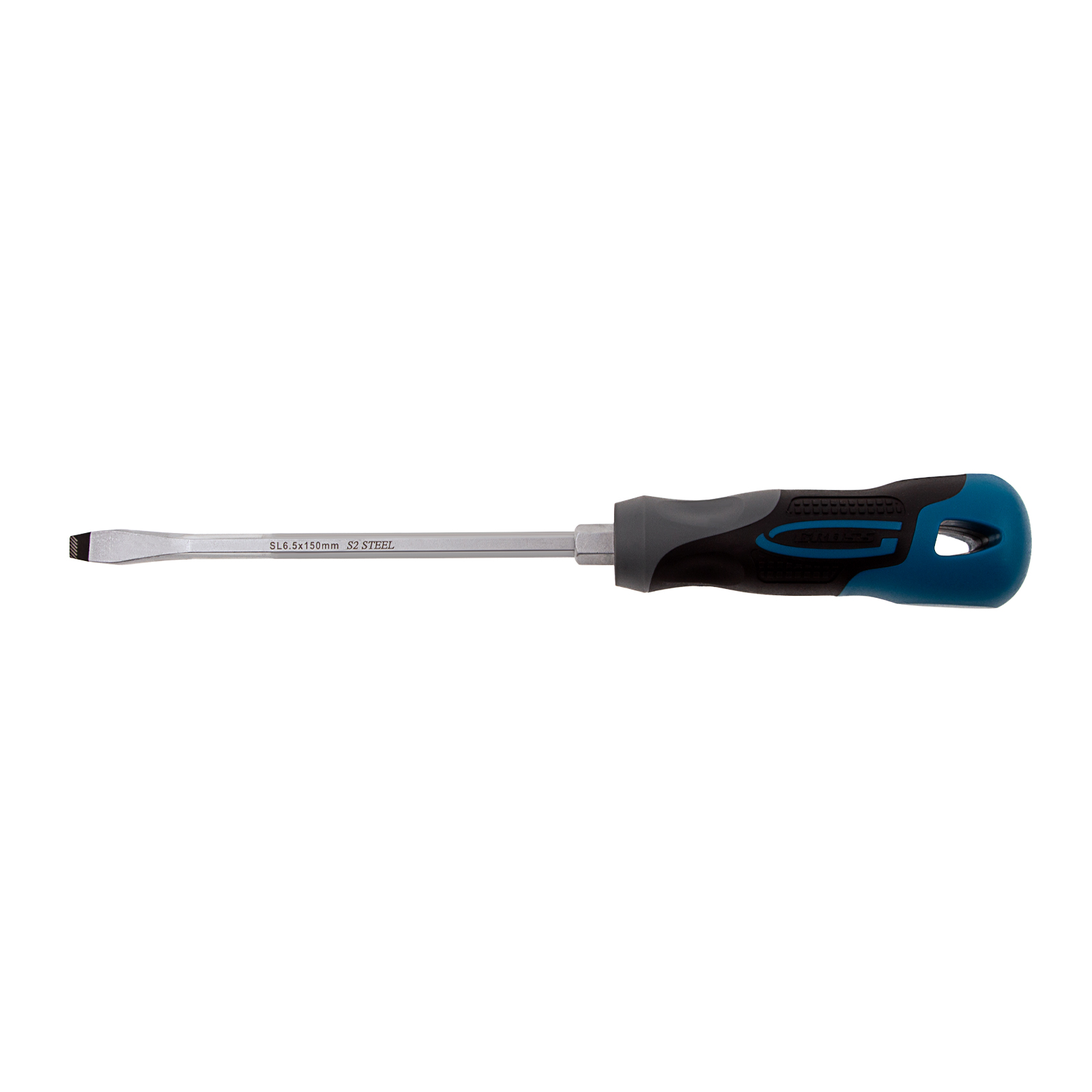 Отвертка Gross 12117, SL6,5 x 150 мм, из стали S2, с трехкомпонентной рукояткой, рассчитана на монтаж и демонтаж крепежных элементов типа Slotted «минус». С ее помощью можно проводить монтажные, строительные и ремонтные работы. Длина стержня 150 мм позволяет работать с крепежом в углублениях. Отвертка подходит для профессионального использования.