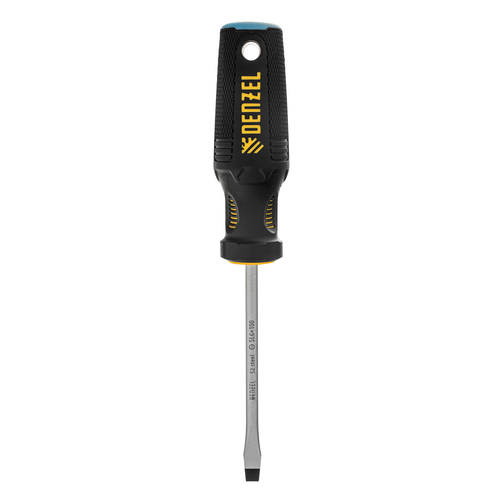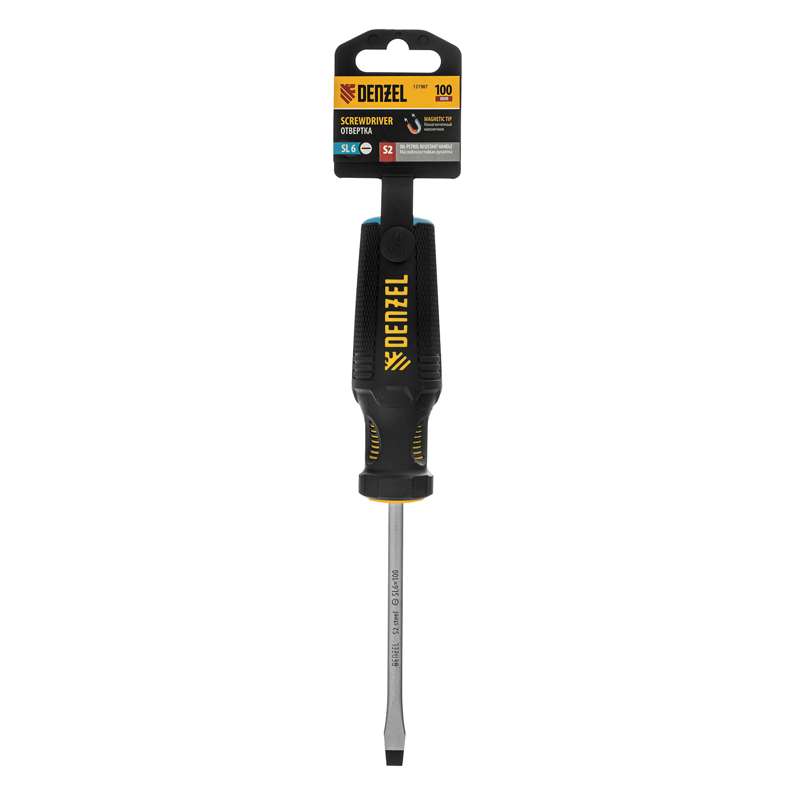 Отвертка Denzel 121987 с трехкомпонентной рукояткой, со стержнем из стали S2, длиной 100 мм, предназначена для монтажа и демонтажа винтов и саморезов с прямым шлицем SL6. Высокоточный намагниченный шлиц крепко фиксируется в головке крепежа. Отвертка выдерживает интенсивное применение, предназначена для выполнения профессиональных ремонтных и монтажных работ.