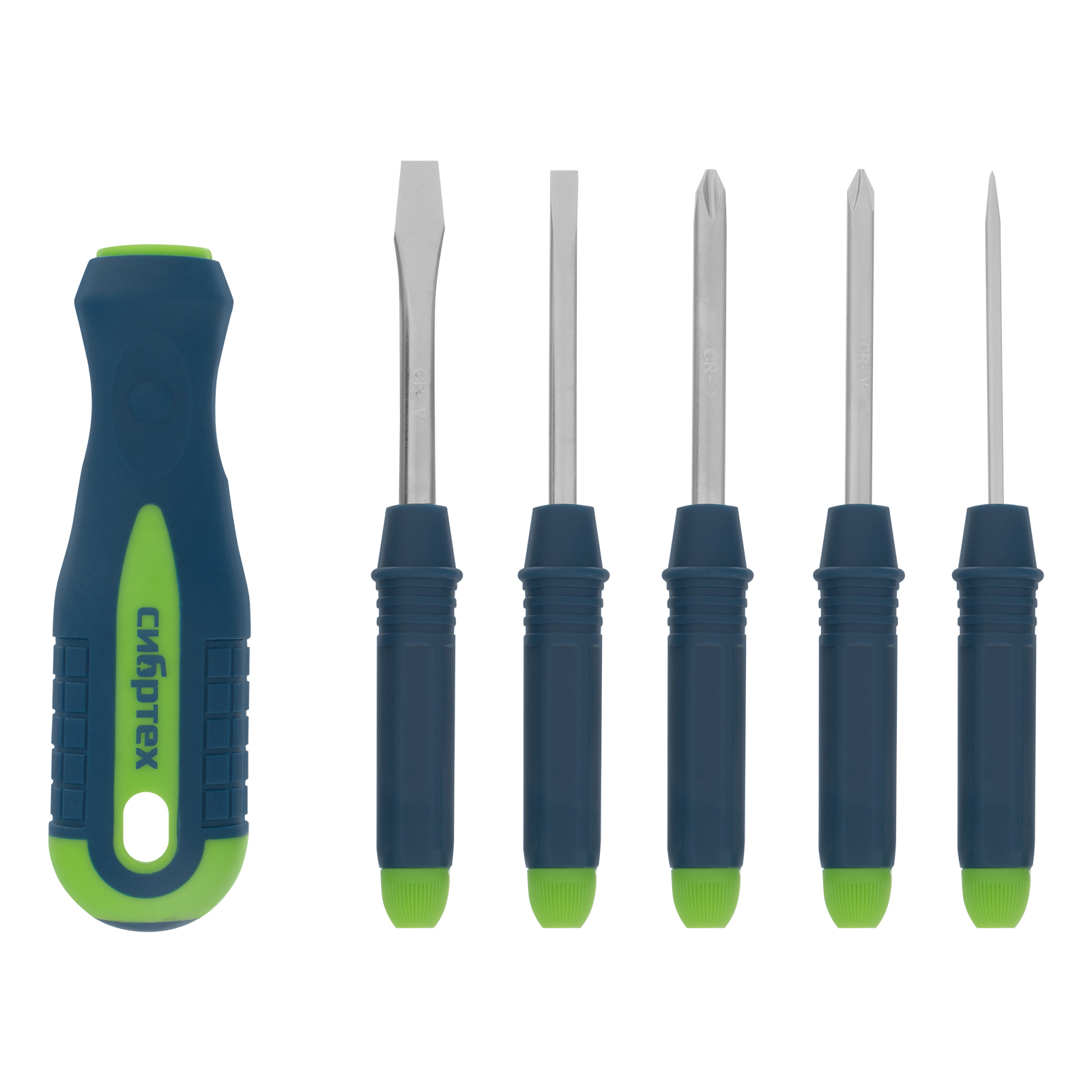 Отвертка со сменными насадками Сибртех 13384, 5 предметов, пригодится для монтажных и ремонтных работ в квартире, на даче, в гараже. Набор включает в себя 4 стержня для работы с крепежами типоразмера PH1, PH2, SL5, SL6 и шило для прокалывания материалов.