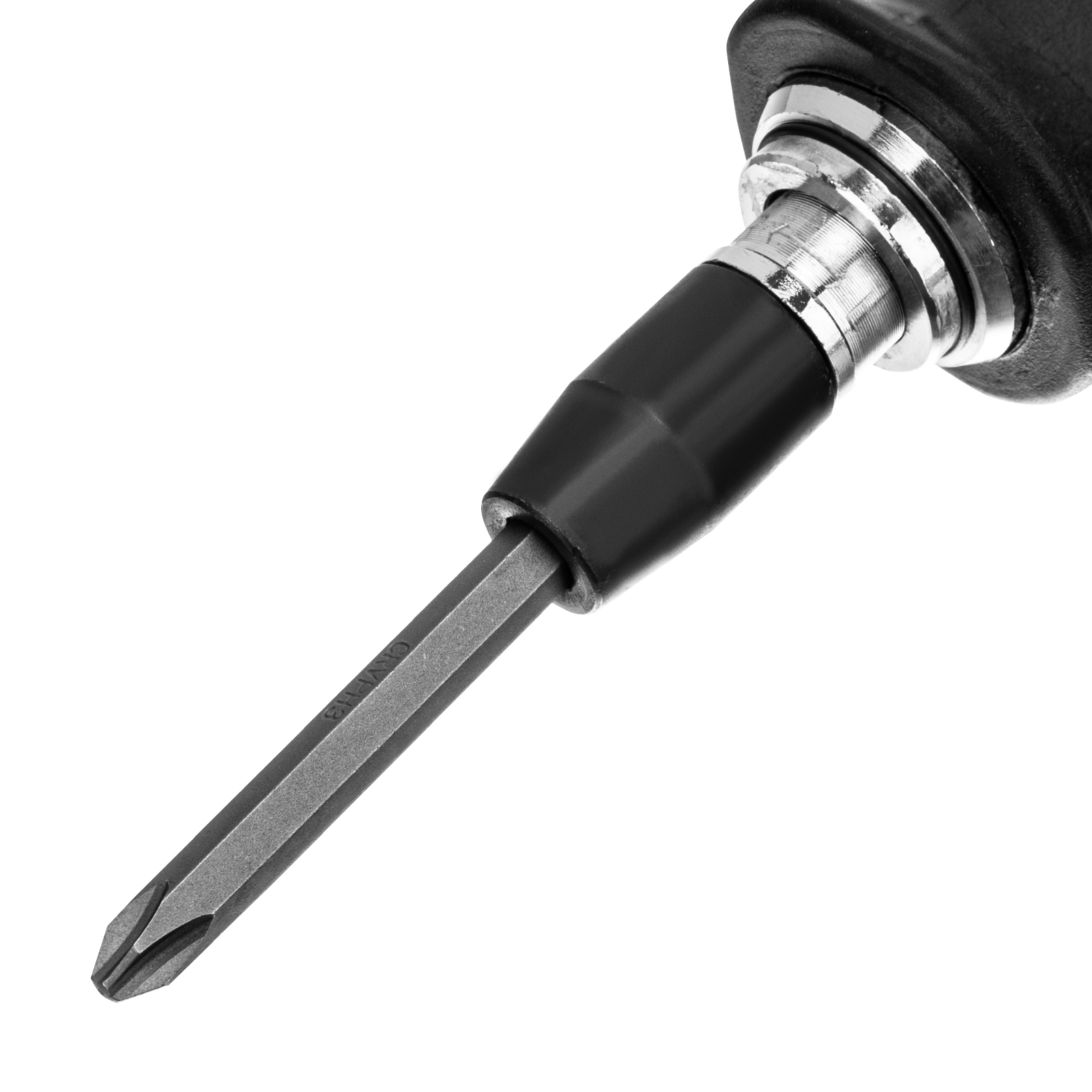 Ударно-поворотная отвертка Matrix 11561 с черной ручкой, с присоединительным шестигранником 1/2", с набором из 6 бит., в пластиковом кейсе, предназначена для работы с резьбовыми соединениями, в том числе для демонтажа перетянутых или заржавевших крепежей. Металлический затыльник выдерживает удары молотком. Отвертка используется при проведении ремонта автомобильной и другой техники, рекомендована для профессионального применения.