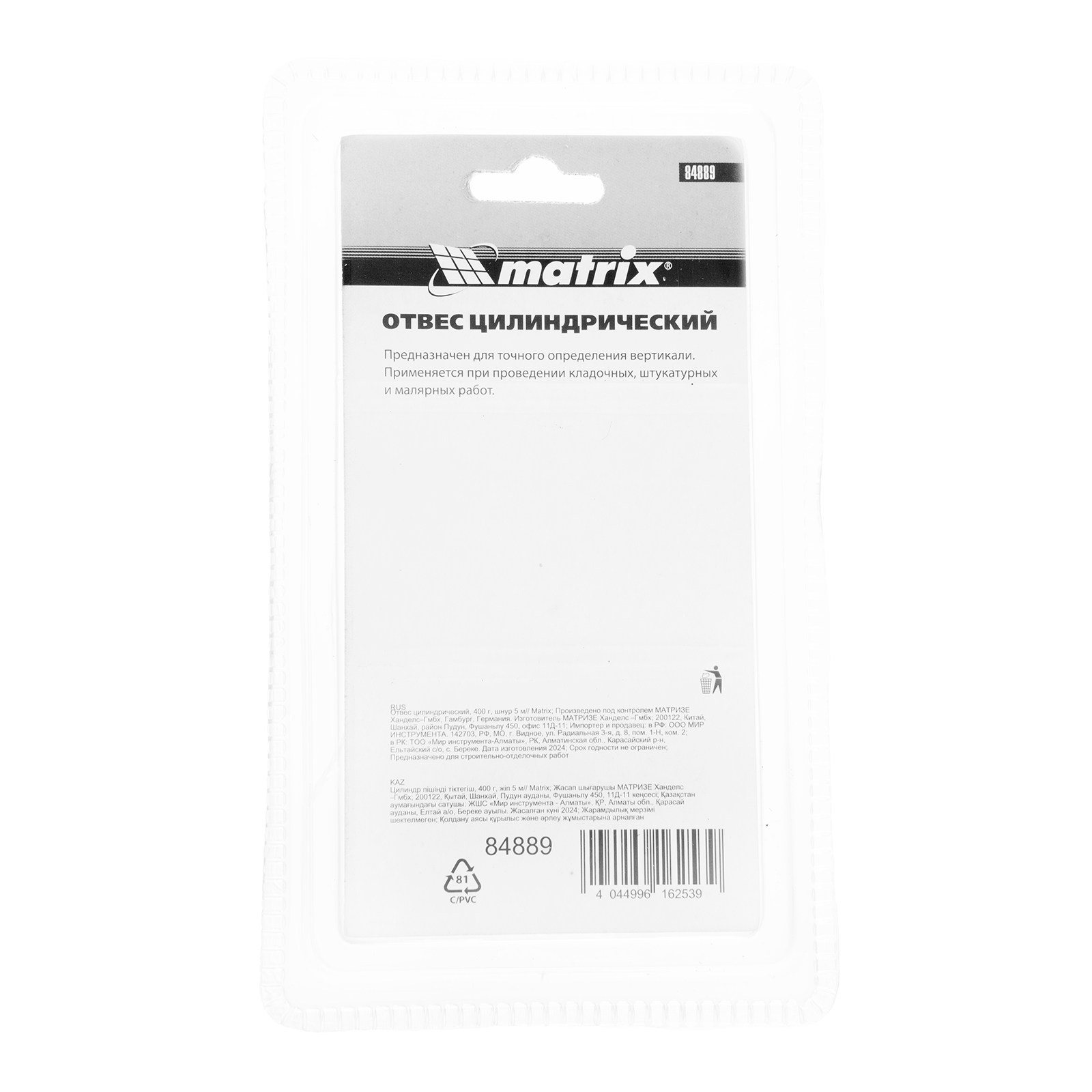Цилиндрический отвес Matrix 84889 весом 400 г, в комплекте со шнуром 5 м, позволяет осуществить контроль вертикали. Он пригодится мастерам при проведении работ внутри и снаружи помещений. Отвес в форме цилиндра обеспечивает отличную центровку. За счет увеличенного веса 400 г оптимален для наружных работ.