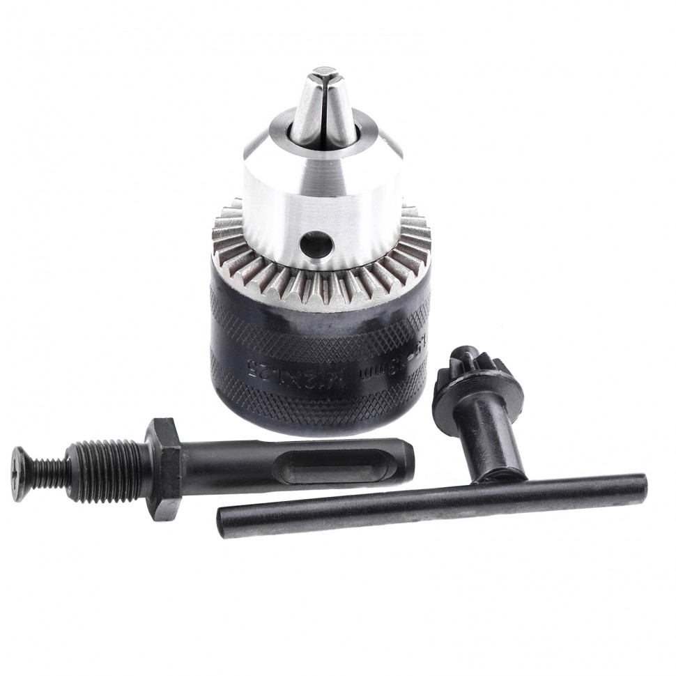 Ключевой патрон Сибртех 168257, тип соединения М12х1,25, под оснастку 1,5-13 мм, с адаптером SDS PLUS, можно использовать как с дрелями, так и с перфораторами. Позволяет надежно зафиксировать сверло, работать без риска его прокручивания и выпадения. Пригодится в качестве основного или запасного патрона на строительной площадке.