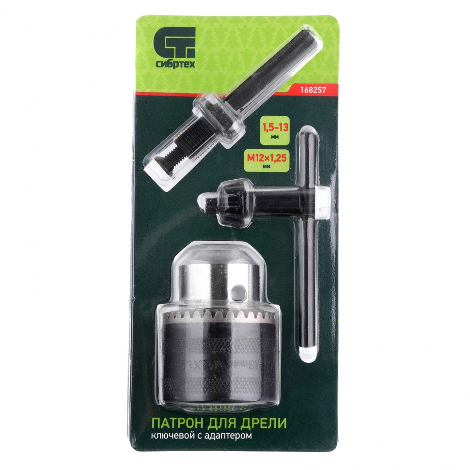 <p>Ключевой патрон Сибртех 168257, тип соединения М12х1,25, под оснастку 1,5-13 мм, с адаптером SDS PLUS, можно использовать как с дрелями, так и с перфораторами. Позволяет надежно зафиксировать сверло, работать без риска его прокручивания и выпадения. Пригодится в качестве основного или запасного патрона на строительной площадке.</p><h2>Преимущества</h2><ul><li>Стойкость к нагрузкам — кулачки патрона закалены до твердости 54-56 HRC.</li><li>Надежная фиксация оснастки — патрон оснащен ключевым механизмом.</li><li>Рельефная поверхность — патрон не скользит в руках, за счет чего с ним удобно работать.</li><li>Отчетливая маркировка — основные характеристики патрона нанесены на его корпус.</li><li>Ключ в комплекте — его не придется покупать отдельно.</li></ul>