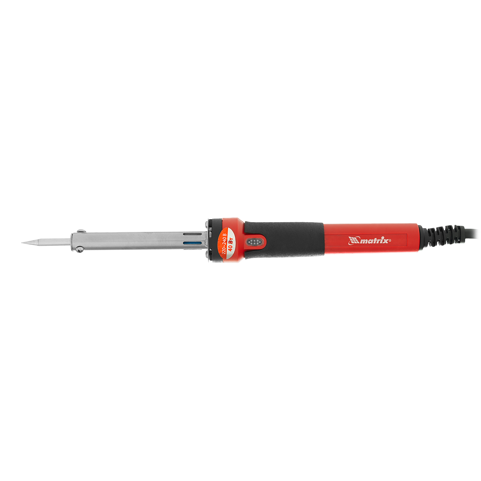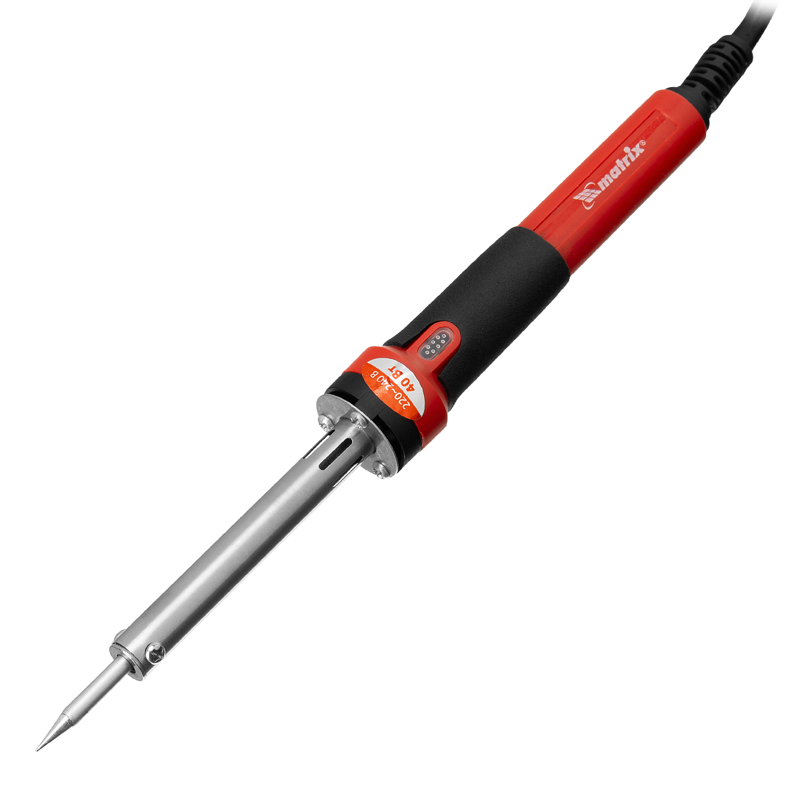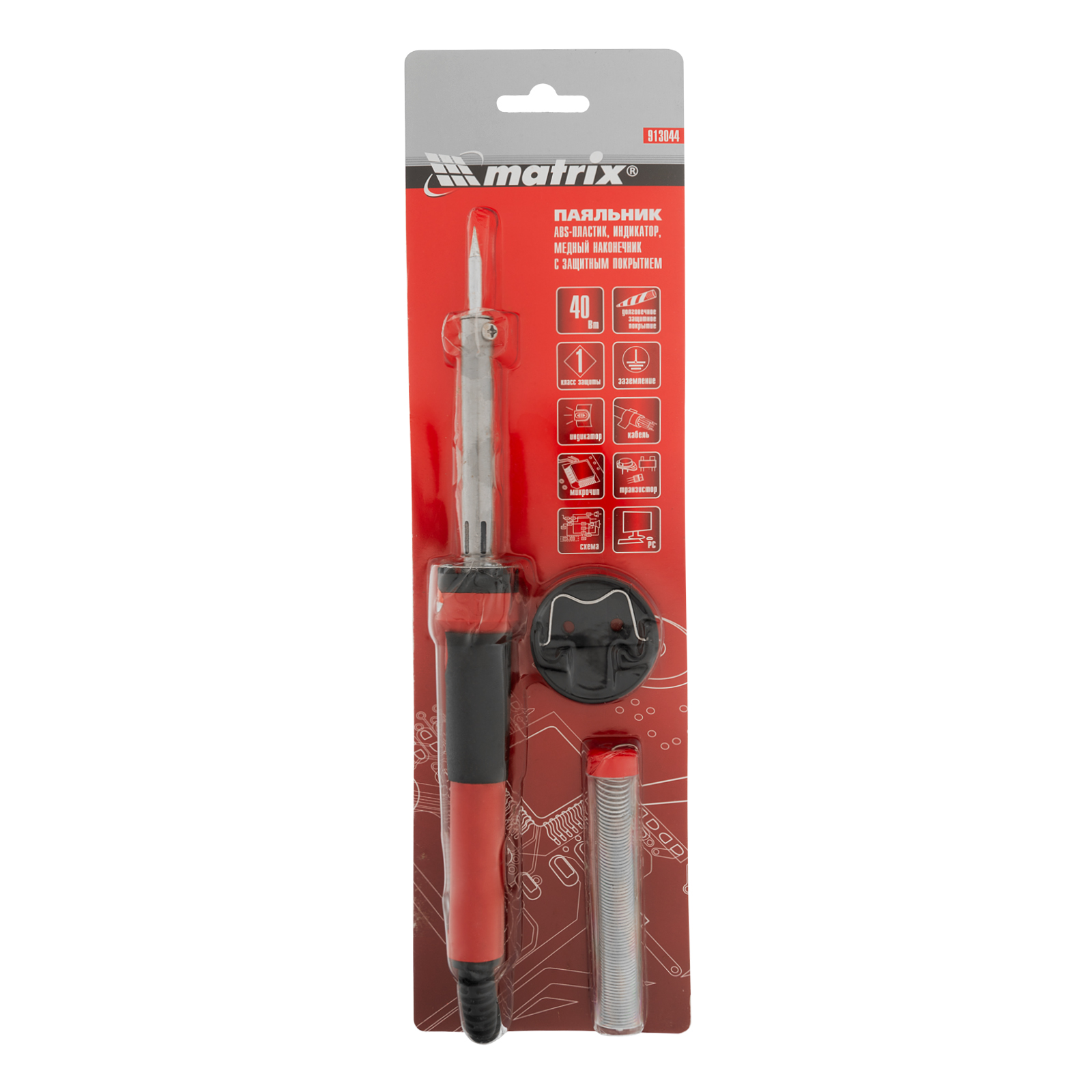 Паяльник Matrix 913044 мощностью 40 W, с корпусом из пластика ABS, индикатором и медным наконечником с долговечным гальваническим покрытием, работает от сети 220 В, имеет класс защиты 1 и используется для пайки микрочипов, транзисторов, проводки и электросхем. Поставляется с припоем в пластиковой тубе, поэтому полностью готов к работе. Конусовидное жало удобно для прецизионной пайки. Прибор пригодится радиолюбителям, автоэлектрикам, а также будет полезен в быту.