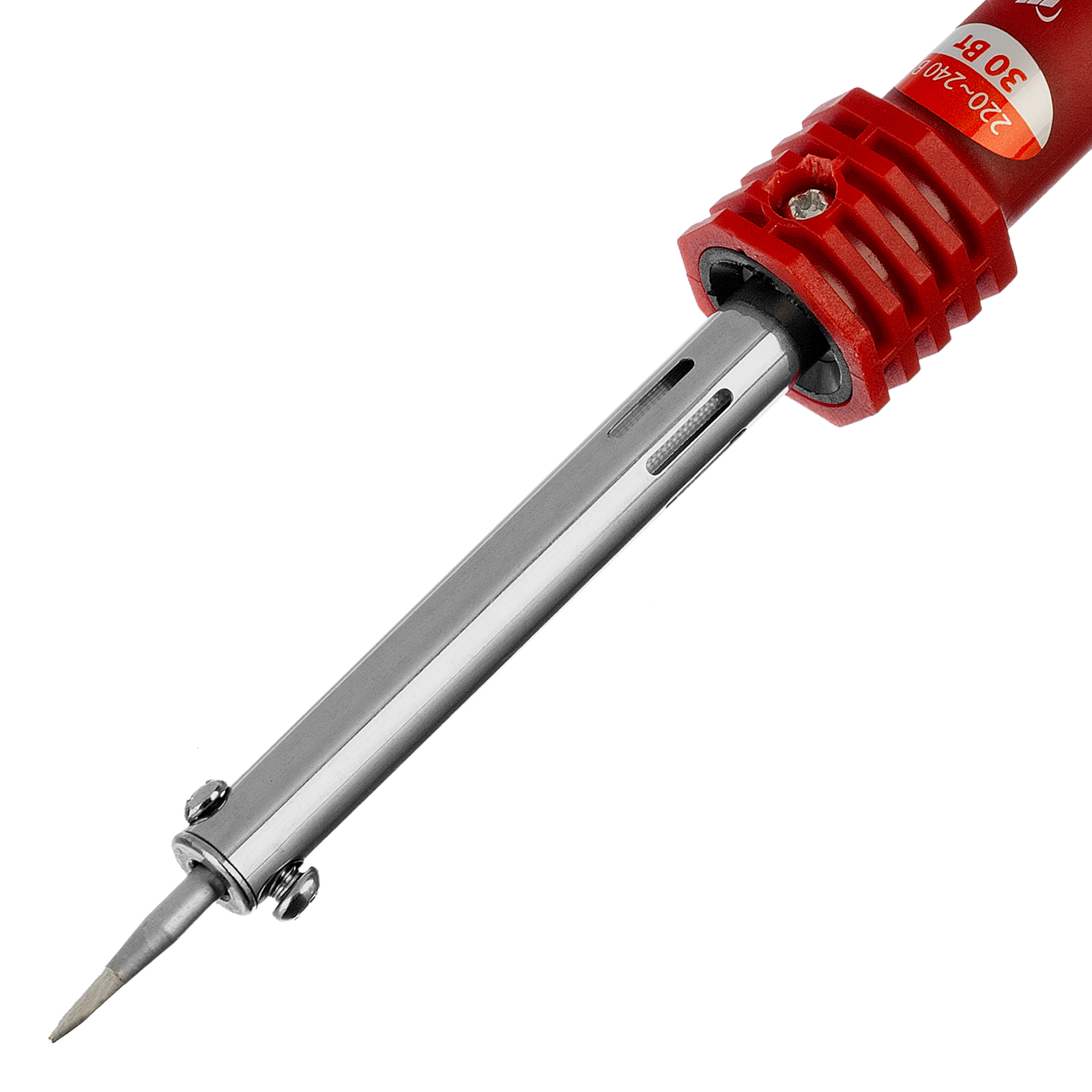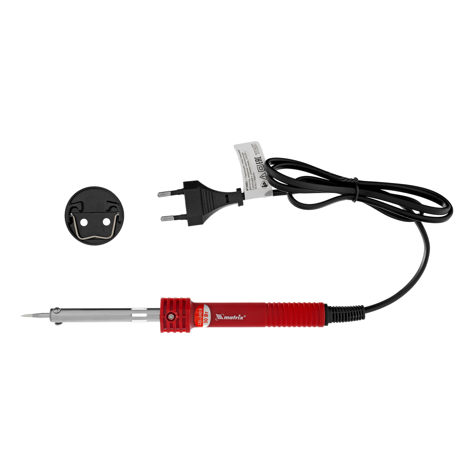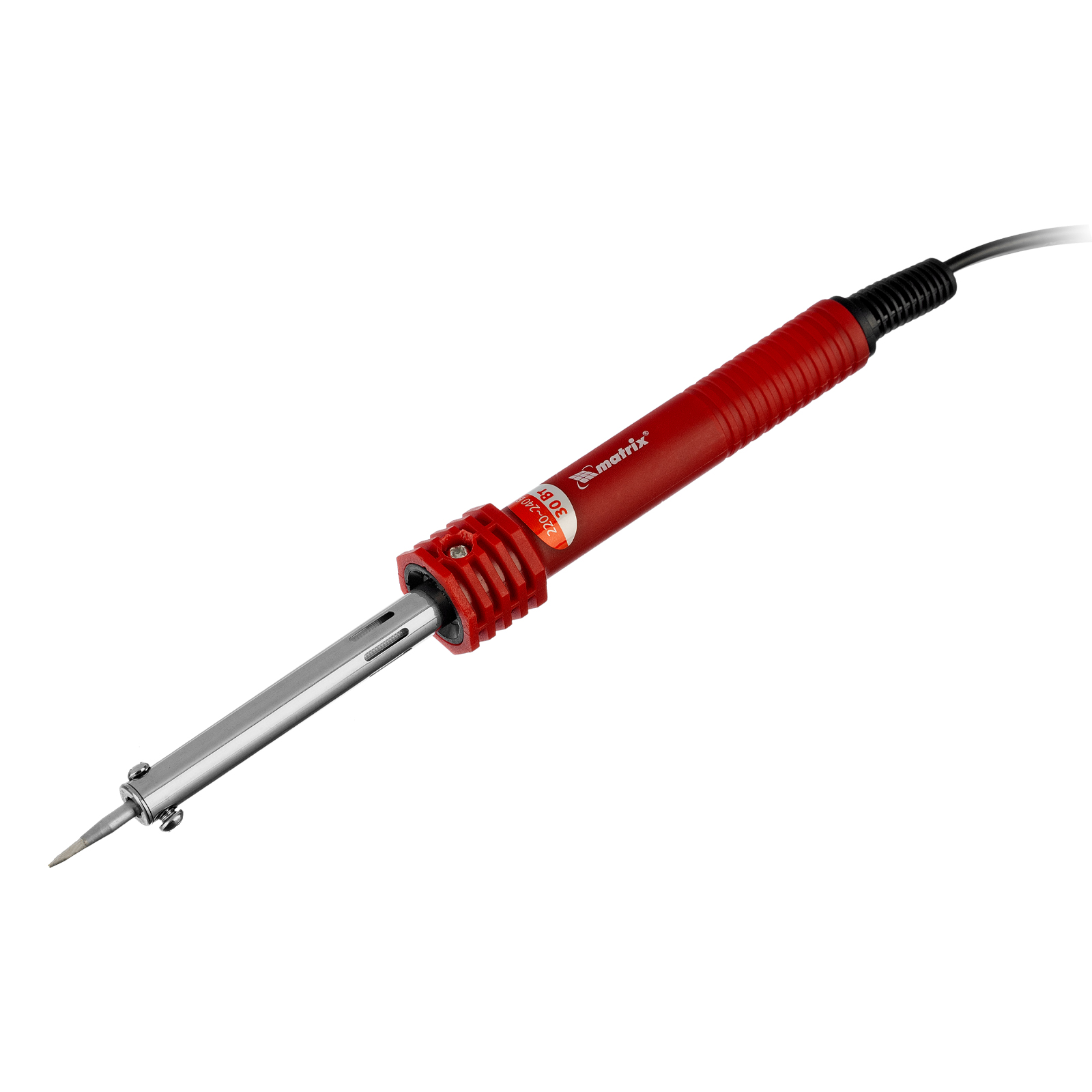 Паяльник Matrix 913003 мощностью 30 W, с пластиковой рукояткой, работающий от сети 220 В, имеет медный наконечник с долговечным гальваническим защитным покрытием, надежно защищающим его от внешних воздействий. Конусовидное жало удобно для выполнения точных работ. Благодаря нагревательному элементу в виде нихромовой спирали паяльник устойчив к повреждениям. Инструмент используется для пайки проводов, микрочипов, электрических схем и транзисторов. Будет полезен для ремонта автомобилей, электроники и бытовой техники.