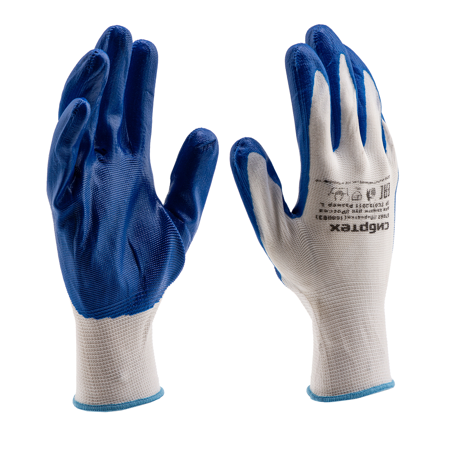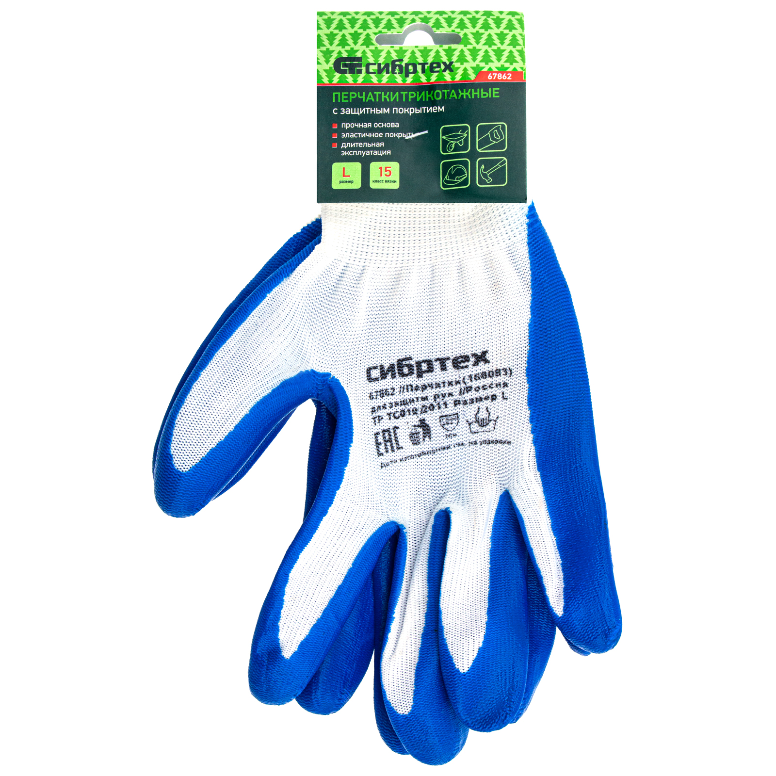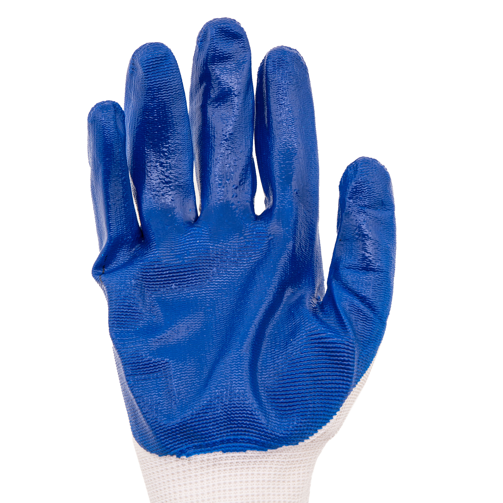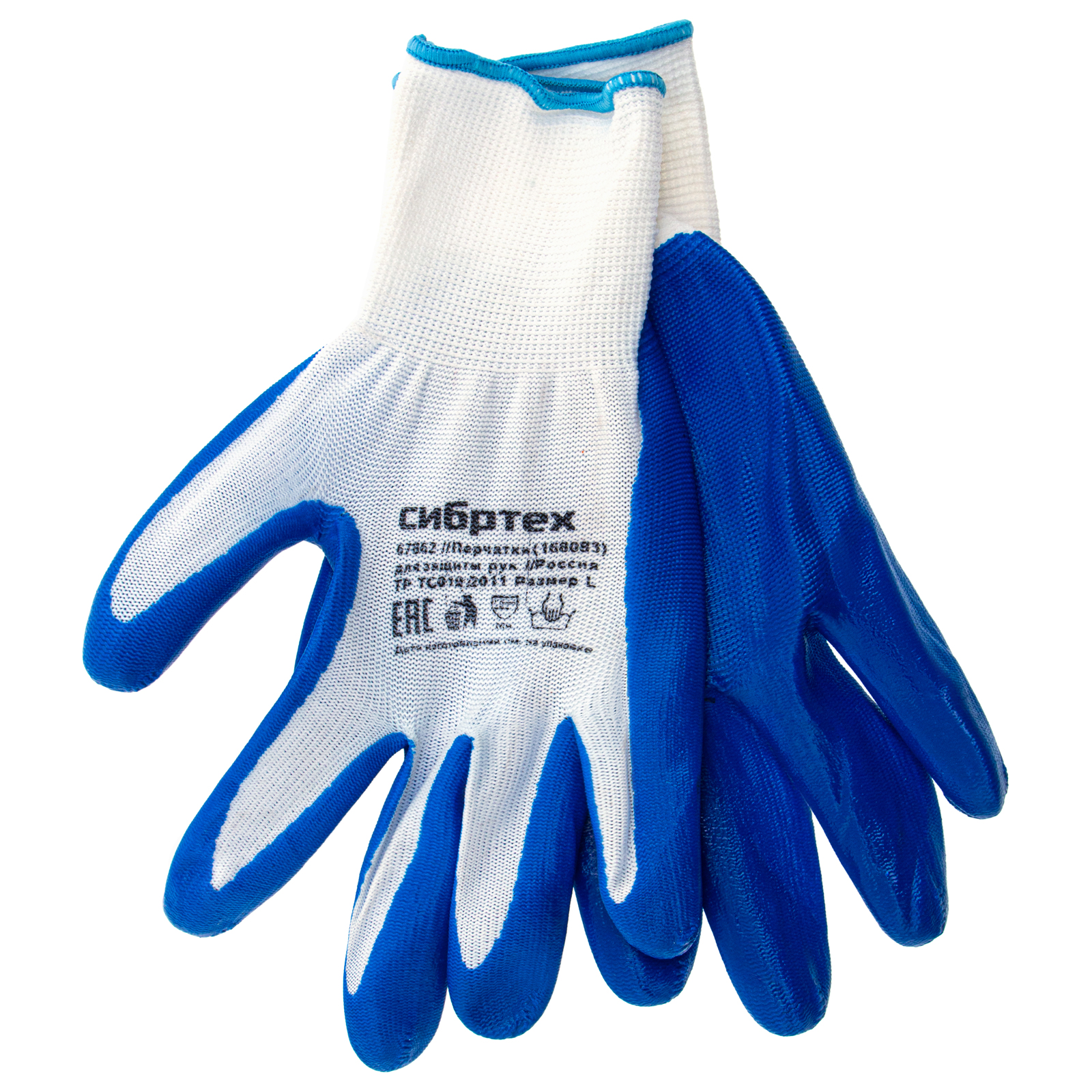 Полиэфирные перчатки Сибртех 67862 с синим нитрильным покрытием, 15 класса вязки, размера L, предназначены для выполнения хозяйственных, ремонтных, строительных и автослесарных работ, в том числе предполагающих контакт с агрессивными веществами. Покрытие из нитрила защищает кожу рук от попадания бензина, масла или краски, а также от влаги и загрязнений. Плотная пряжа предохраняет ладони от царапин, ссадин, порезов и мозолей. Перчатки будут полезны дома, в гараже или на даче.