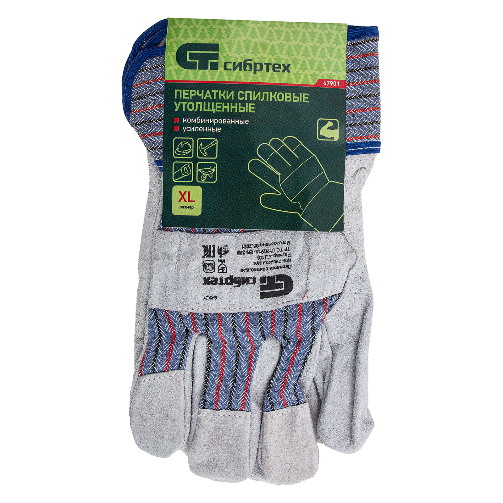 Комбинированные спилковые перчатки Сибртех 67901 размера XL используются во время строительных и погрузочно-разгрузочных работ. Они предохраняют руки от механических повреждений и загрязнений.