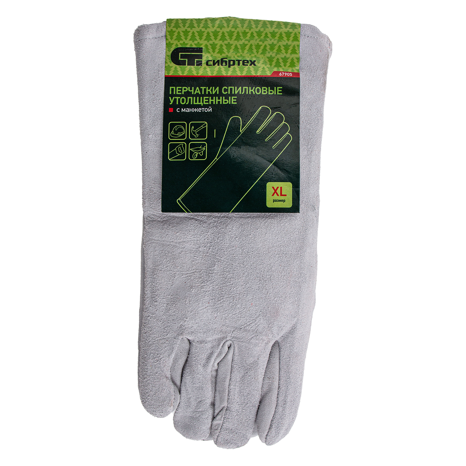 Утолщенные спилковые перчатки Сибртех 67905 размера XL, с манжетами, предназначены для защиты рук от механических повреждений. Позволяют избежать появления царапин, мозолей, гематом во время садовых и строительных работ.