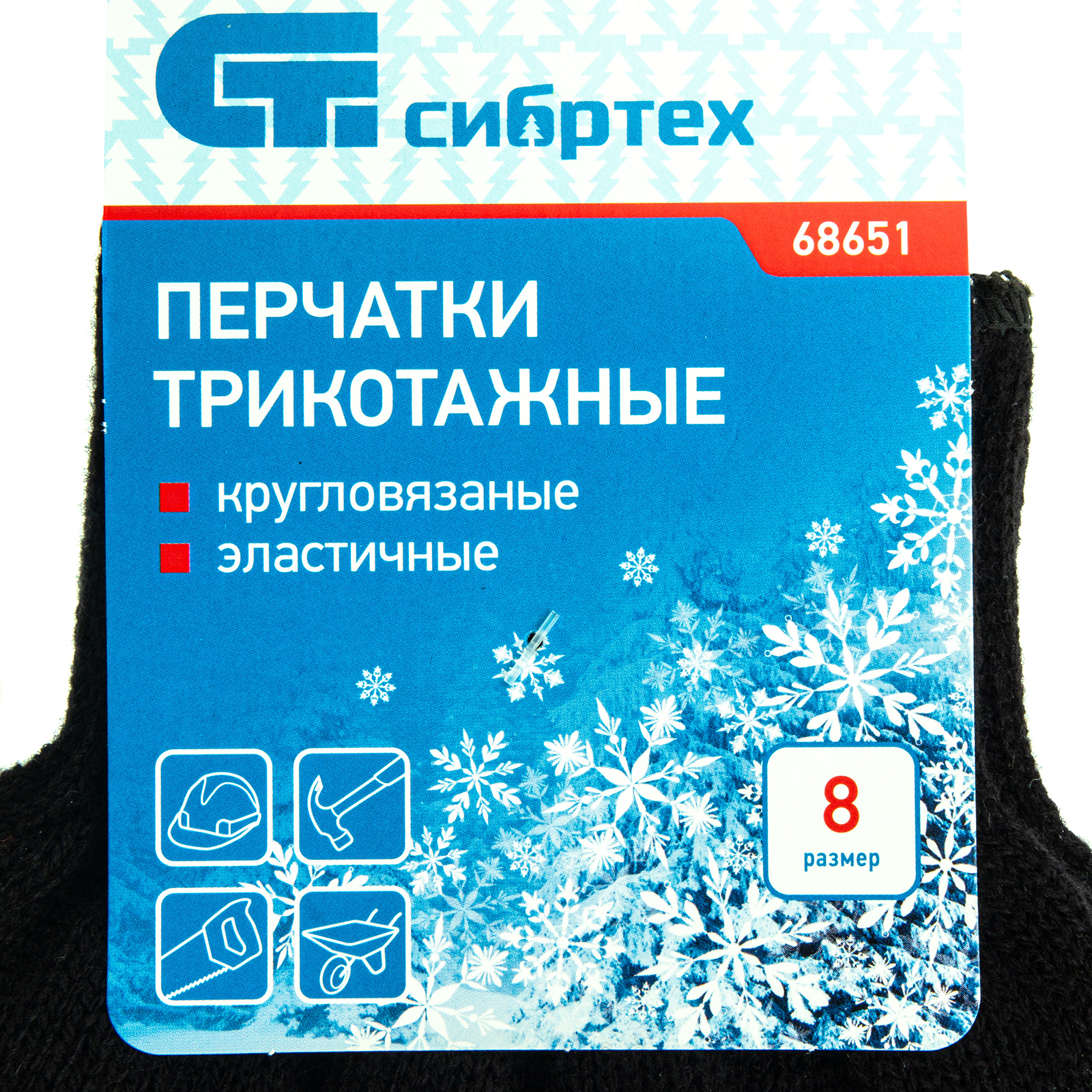 Трикотажные перчатки Сибртех 68651 черного цвета, из акрила, обработанные оверлоком, используют во время проведения строительных и монтажных работ. Они надежно защищают руки от холода, а также от травм и загрязнений. Эластичные перчатки легко надеваются и не стесняют движения пальцев по время работы.