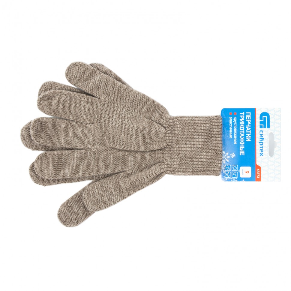 Трикотажные перчатки Сибртех 68673 коричневого цвета, из акрила, с двойной манжетой, используются для проведения строительных и монтажных работ в условиях пониженных температур. Изготовлены из высокообъемной акриловой пряжи 10 класса вязки, поэтому обладают высокой плотностью и надежно защищают от холода, царапин и ссадин.