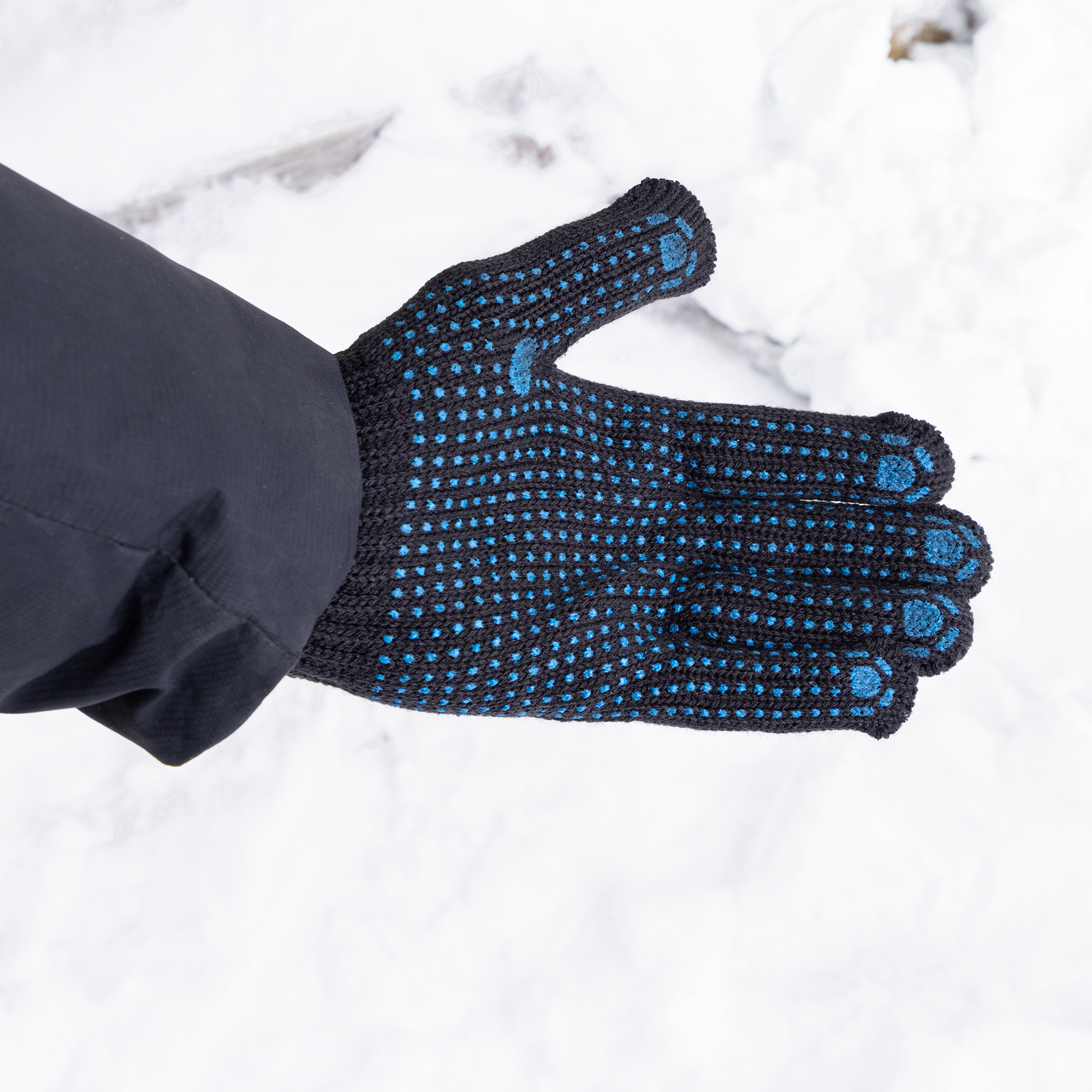 Антискользящие свойства — на ладонную часть нанесено точечное ПВХ-покрытие, обеспечивающее надежный захват инструментов и других предметов.