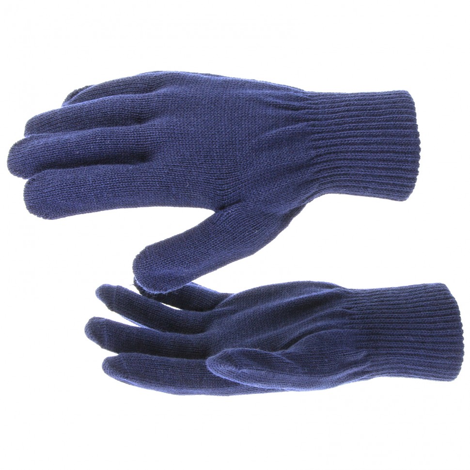 Трикотажные перчатки Сибртех 68675 синего цвета, из акрила, с двойной манжетой, используются для проведения строительных и монтажных работ в условиях пониженных температур. Изготовлены из высокообъемной акриловой пряжи 10 класса вязки, поэтому обладают высокой плотностью и надежно защищают от холода, царапин и ссадин.